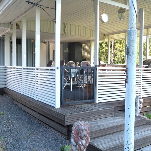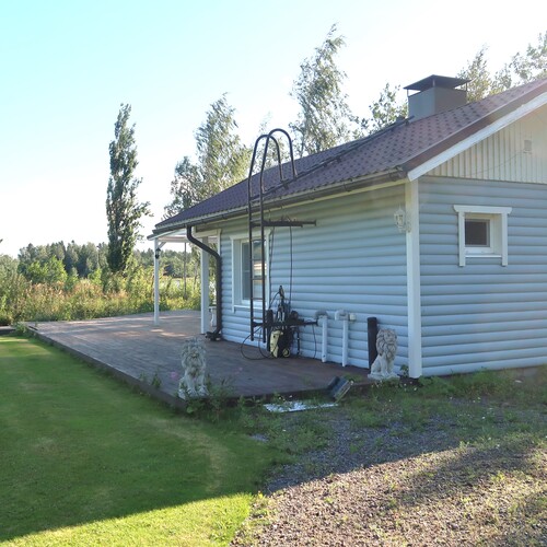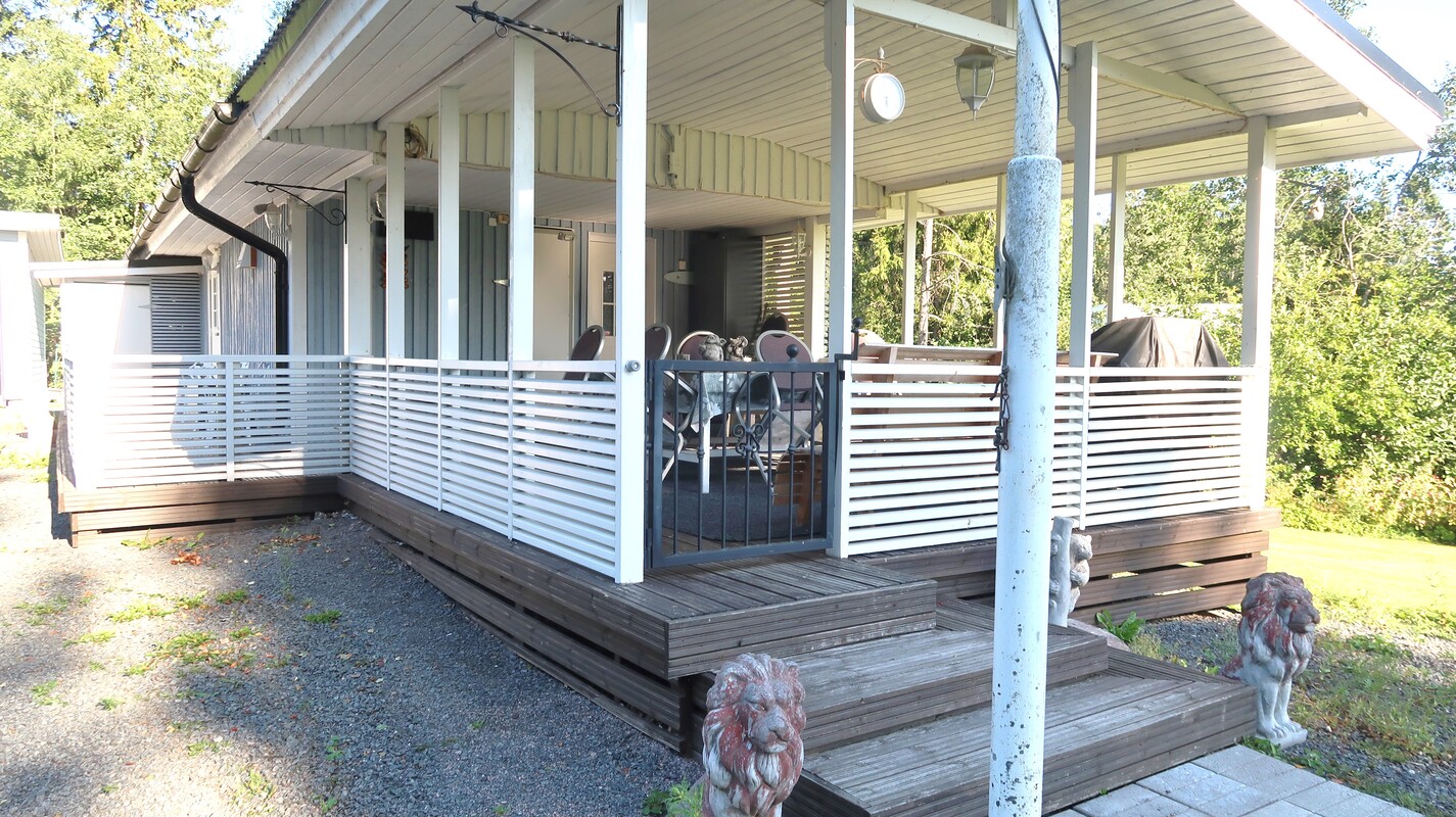 Puurakenteinen asuinrakennus, jossa mm. wc/kylpyhuone. Iso, katettu terassi.