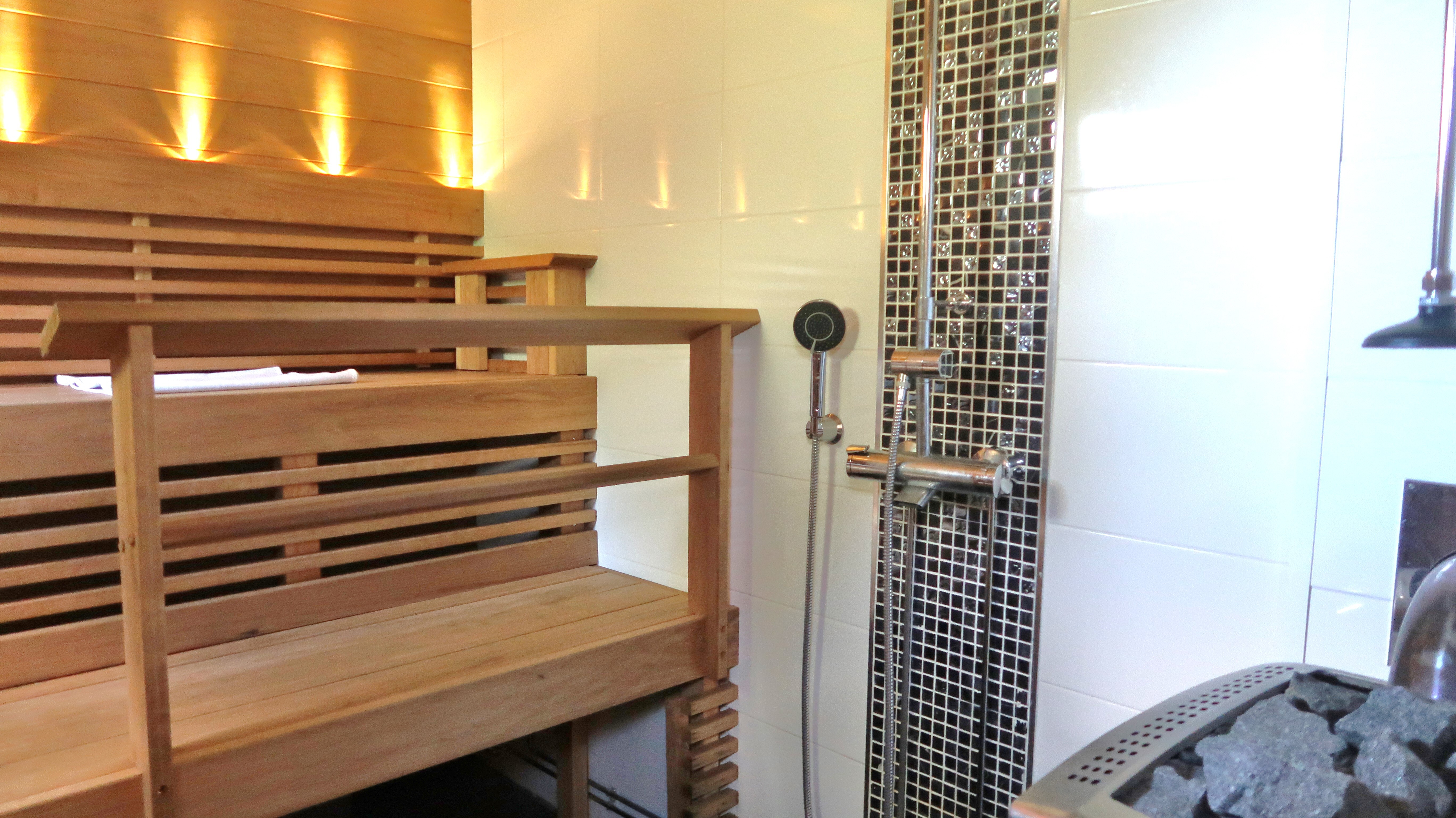 Saunassa suihku.