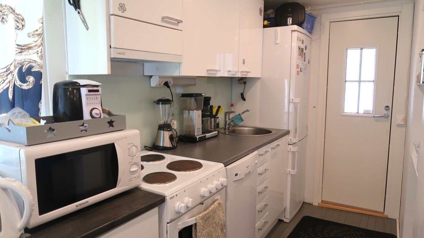 Varusteet: jääkaappipakastin, astianpesukone, sähköliesi, liesituuletin hormilla