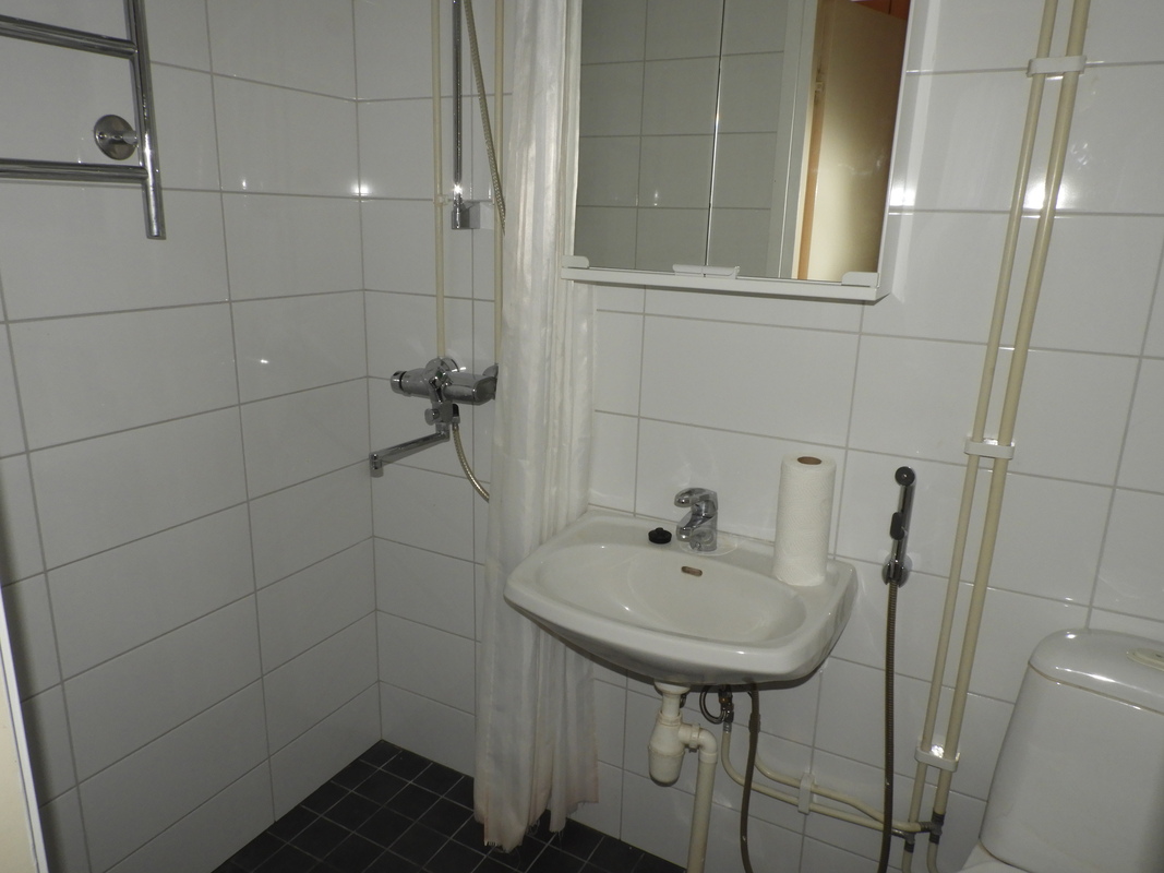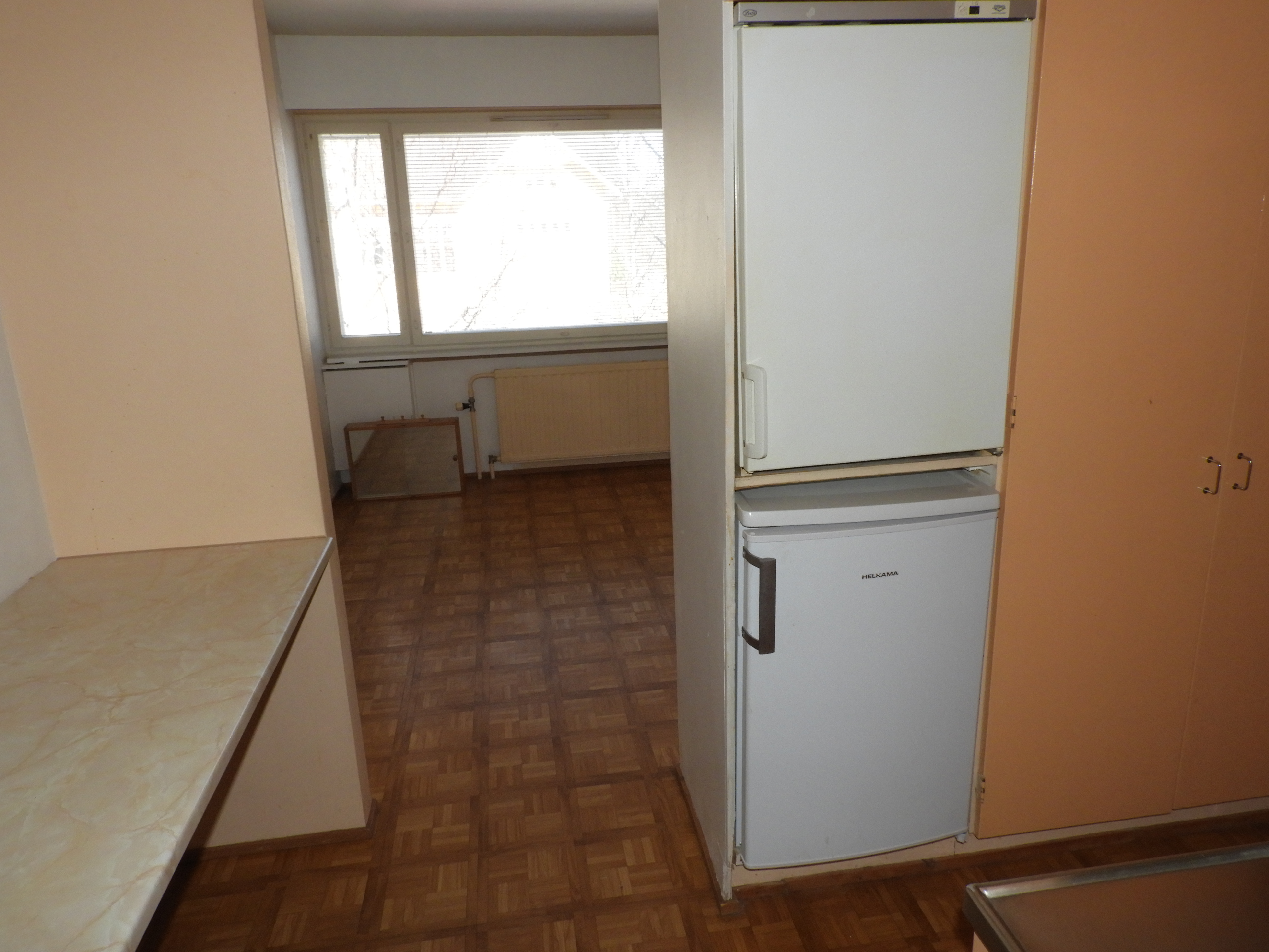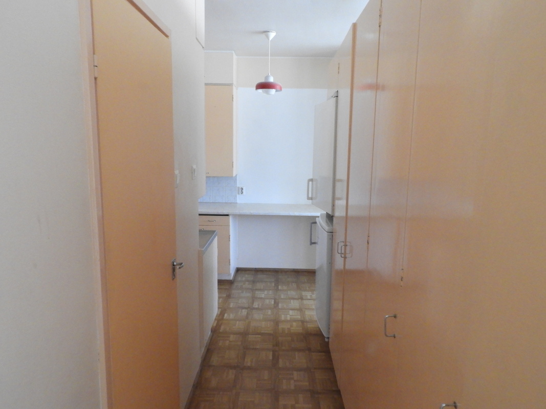 Asunnossa on tilava ja valoisa olohuone sekä käytännöllinen keittokomero, jonka retrohenkiset kaapistot tuovat kotiin persoonallista ilmettä. Pesutiloista löytyy suihku, peilikaappi sekä liitäntä pesukoneelle, mikä helpottaa päivittäistä elämää.