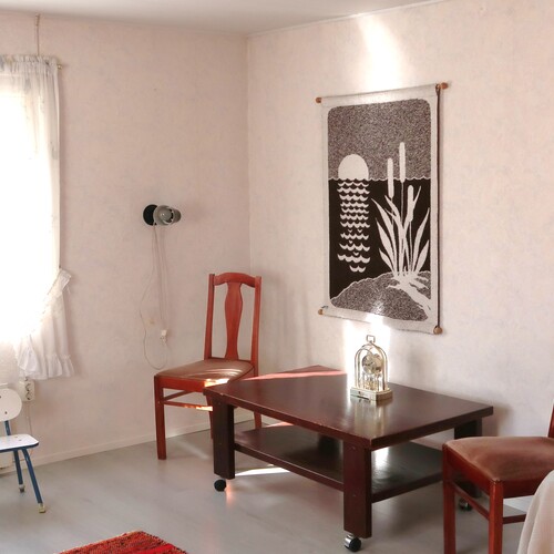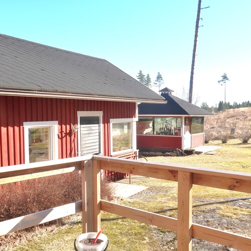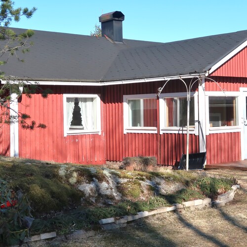 Omassa rauhassaan oleva paikka, jonka kallioinen tontti on todella viehättävä.