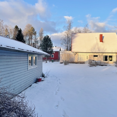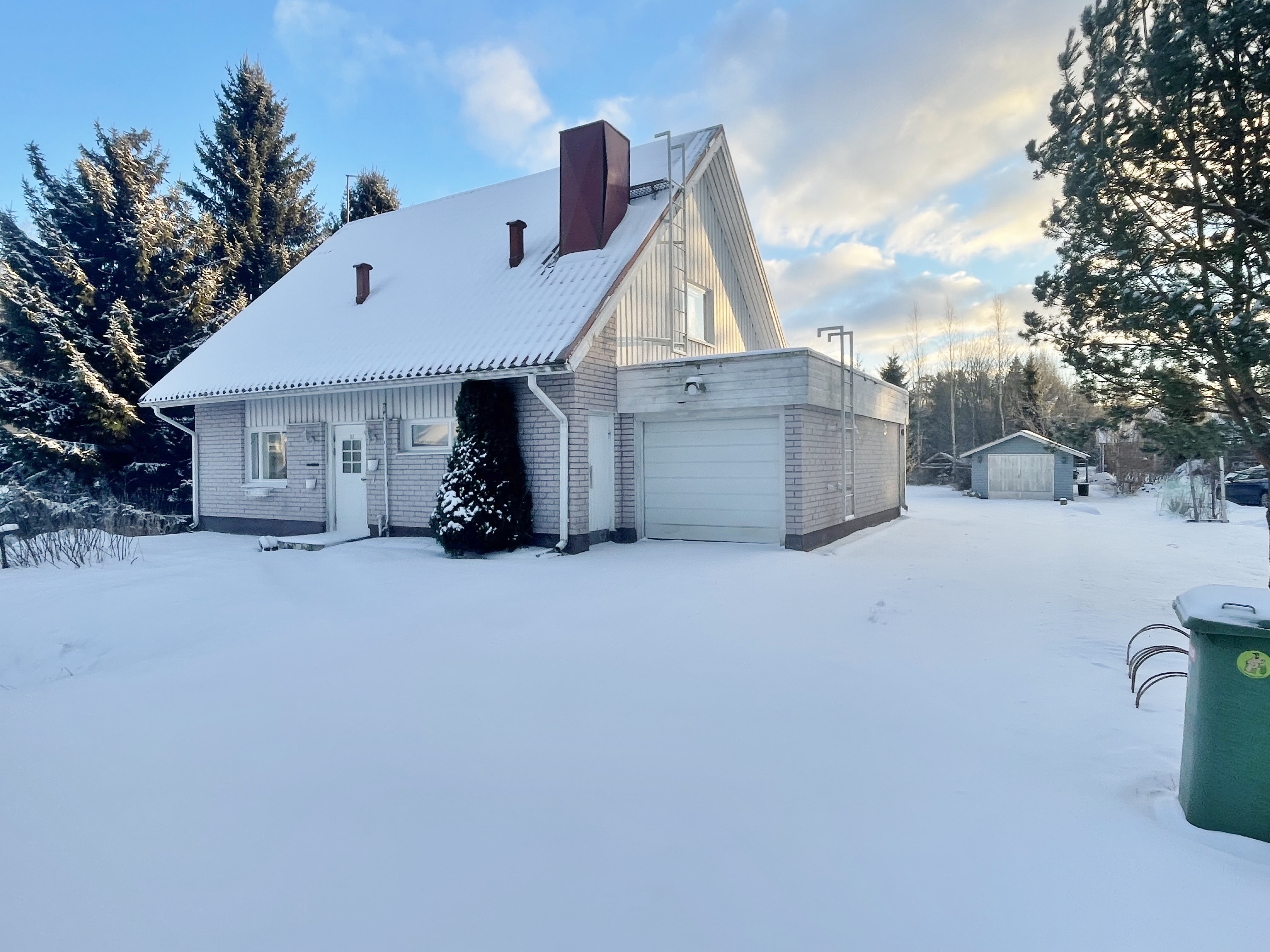 Kiinteistössä on kaksi autotallia, joten tilaa riittää sekä autoille että säilytykselle. Taloa on kunnostettu vuosien varrella: katto ja ikkunat on perusparannettu, mikä tuo huolettomuutta tuleville vuosille.