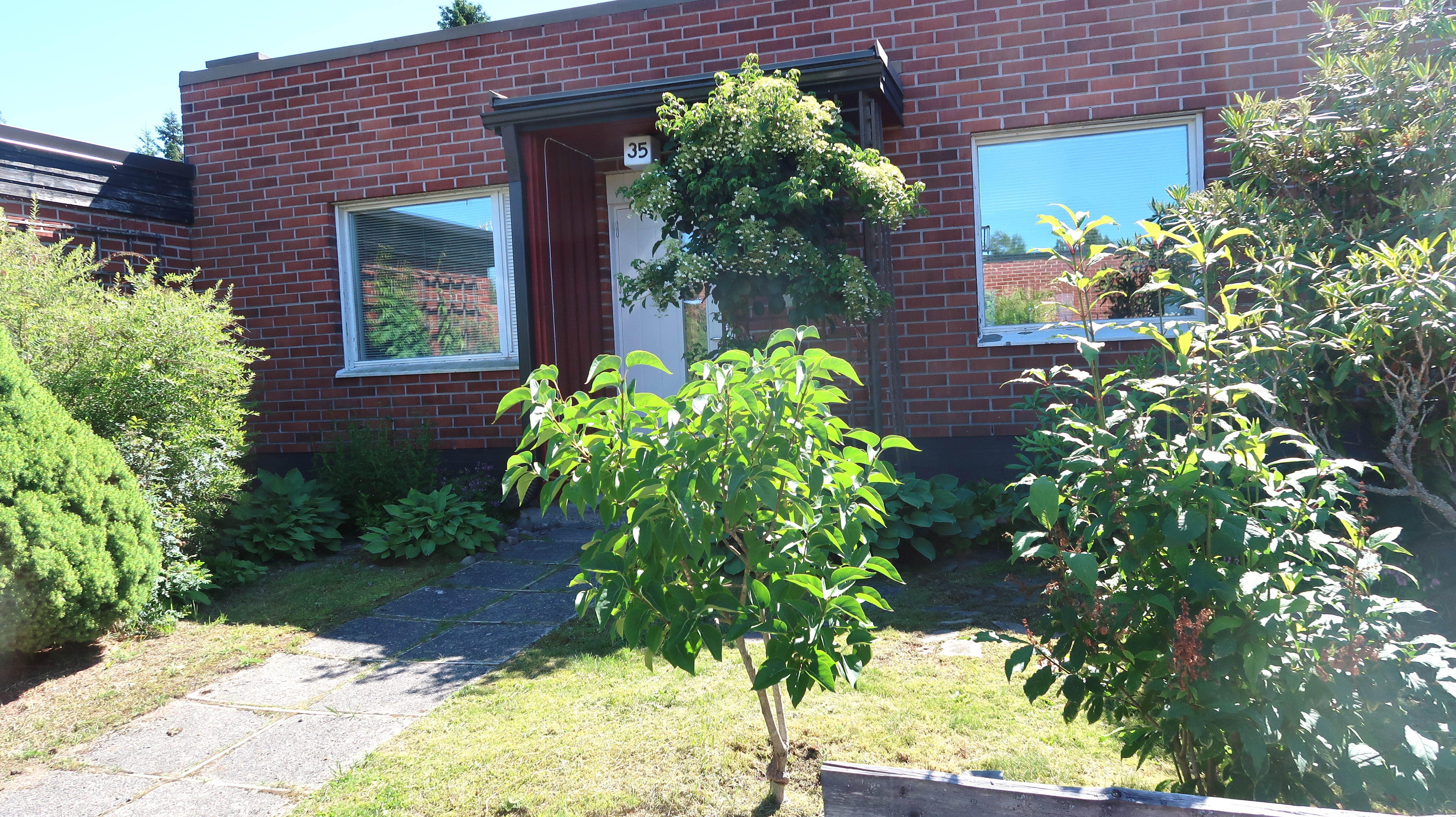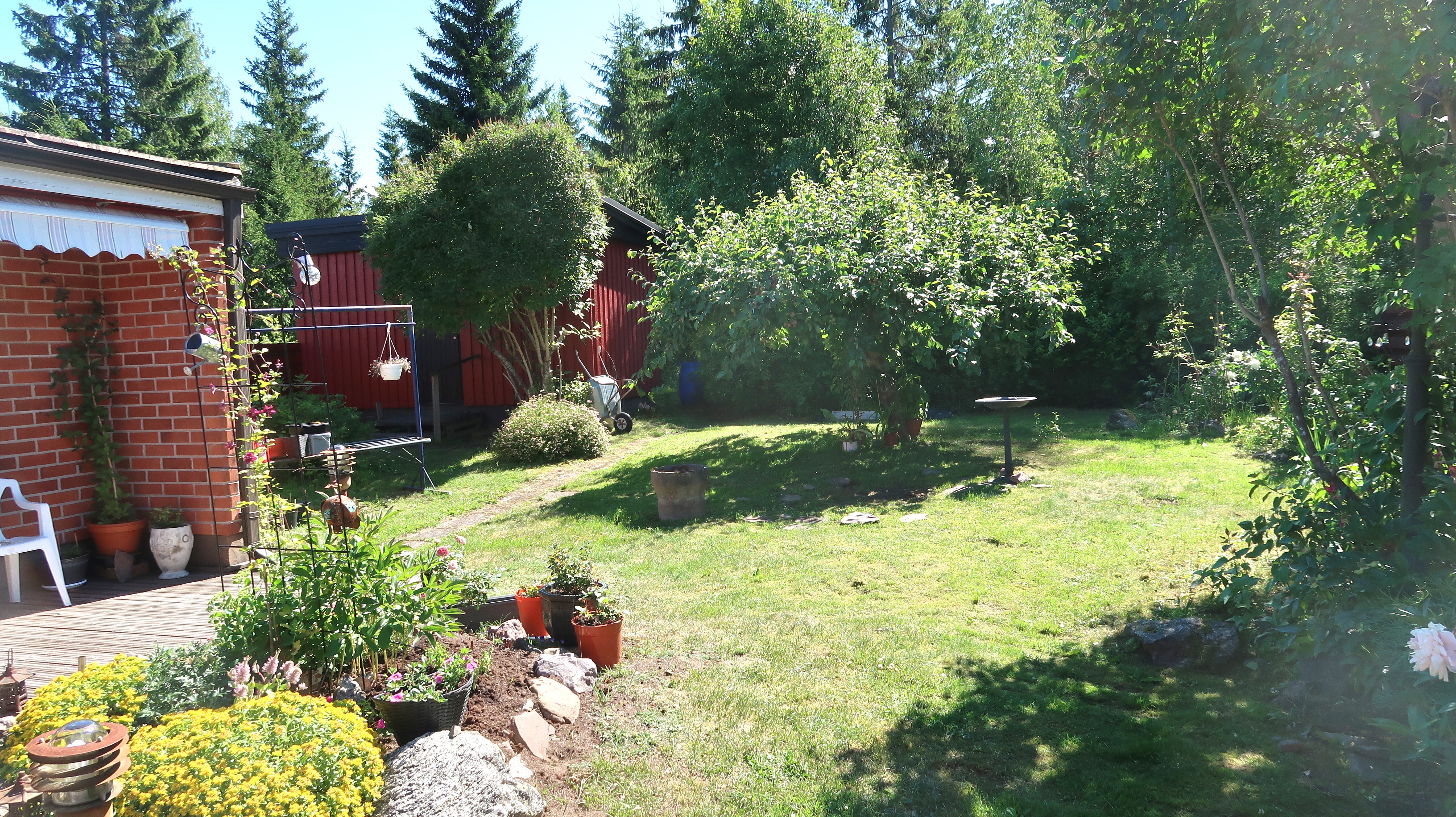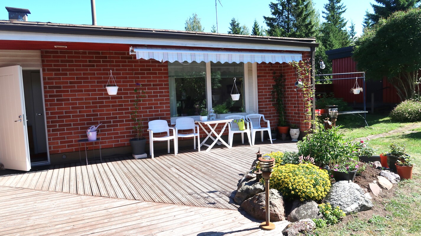 Kaunis, suojainen atrium-piha antaa loistavat puitteet vaikkapa viherpeukalolle tahi muuten ulkona viihtyvälle väelle.