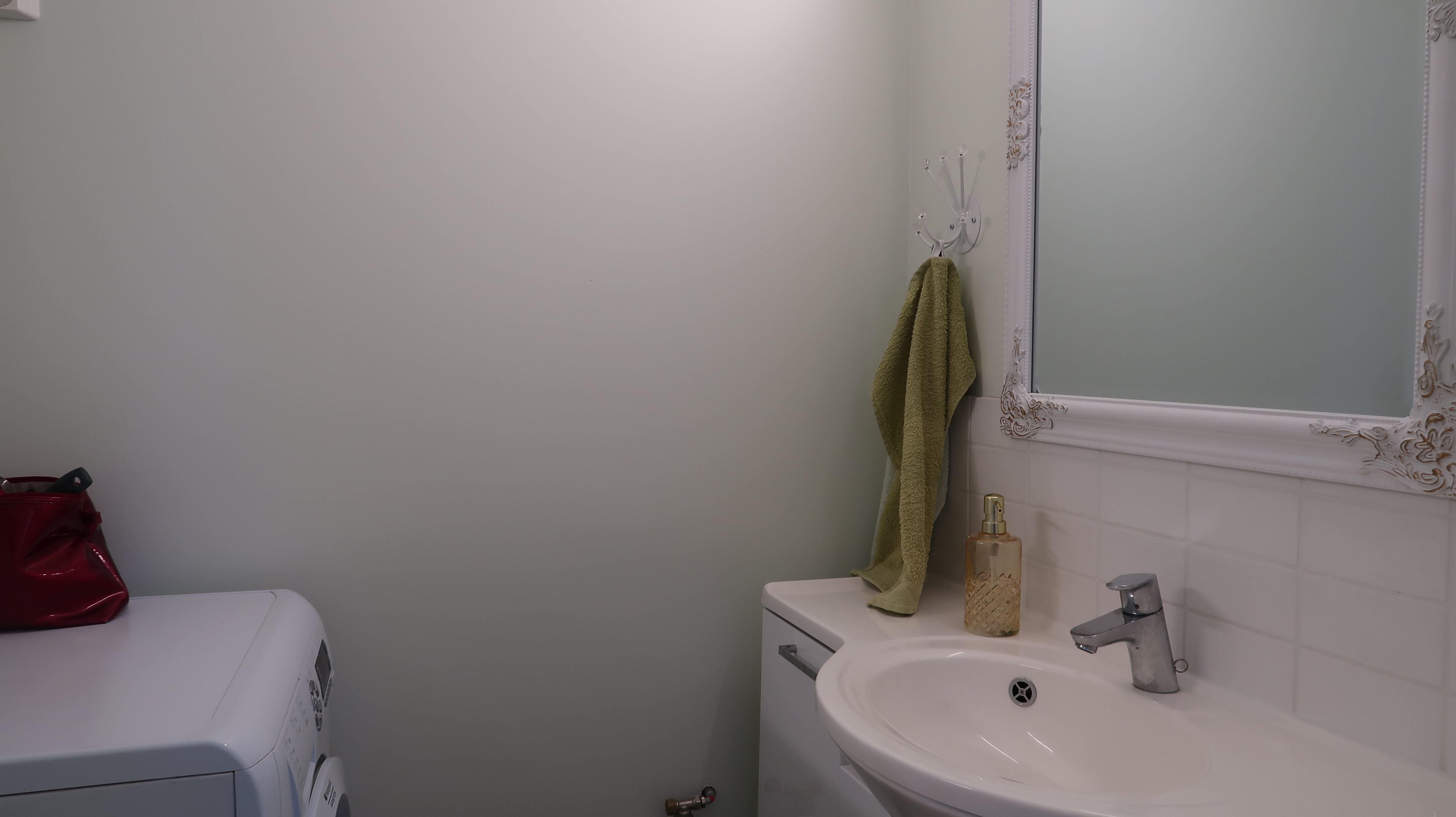 Varusteet: lattiaan asennettu WC, bidee, pesukoneliitäntä