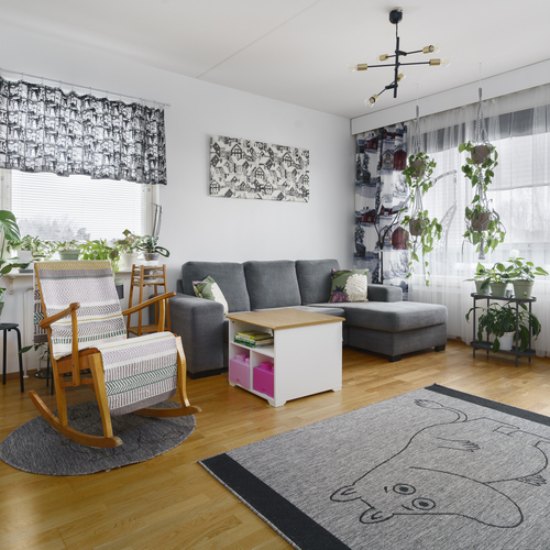 Kaksio puistojen ja palveluiden läheisyydessä alhaisella hoitovastikkeella (alle 4 €/m²). Asunto on kulmahuoneisto, josta näkymät kahteen ilmansuuntaan.