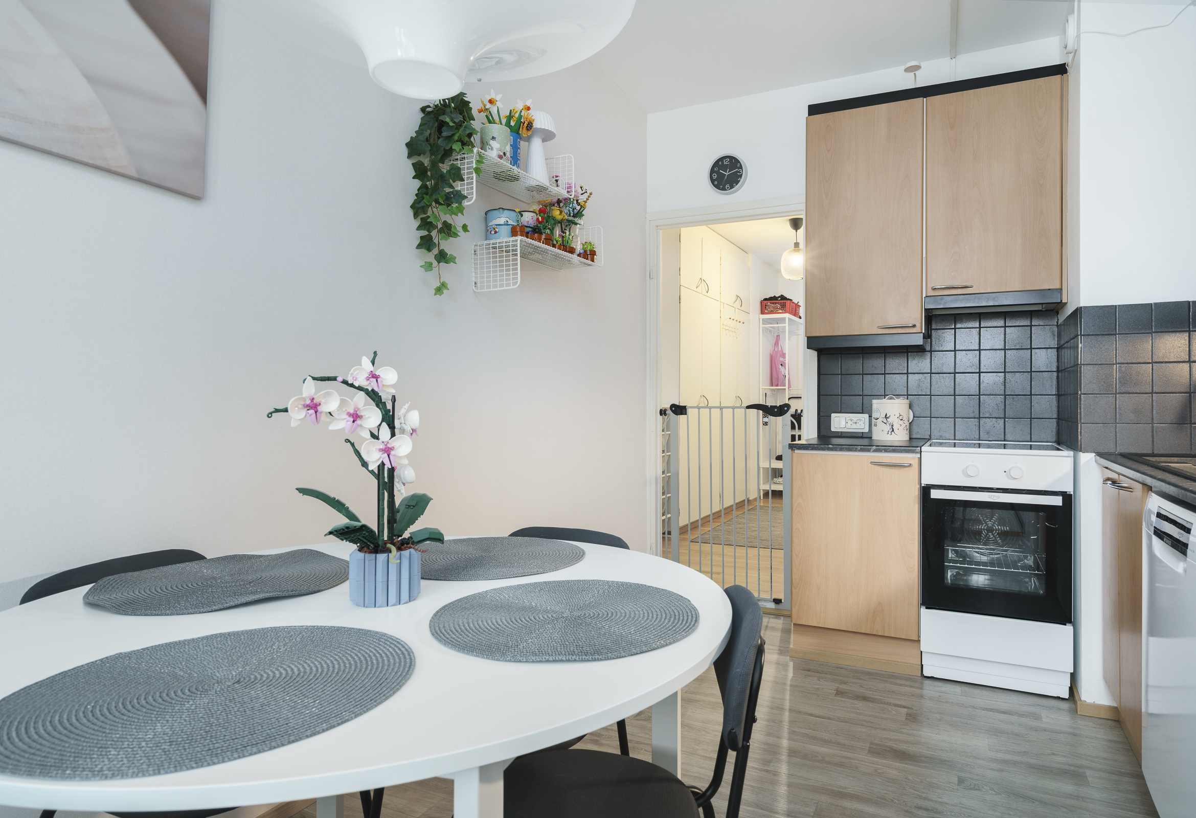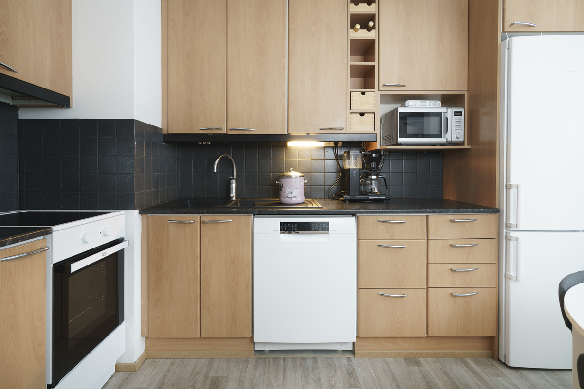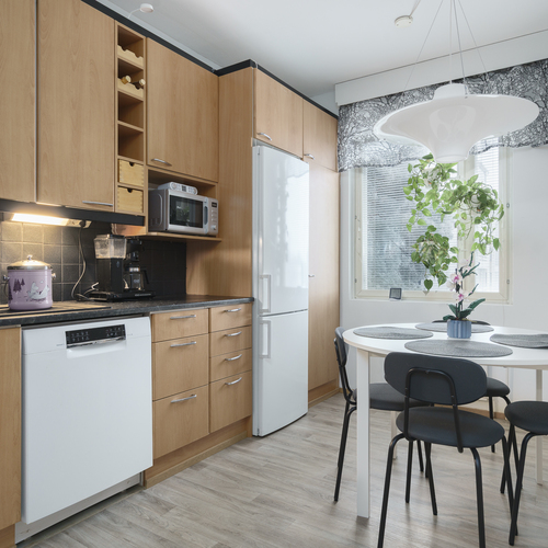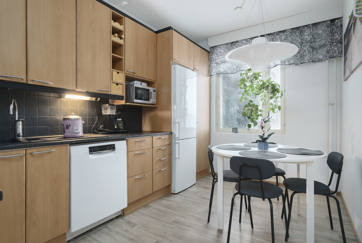 Keittiössä tehty pieniä parannuksia 2023. Allas ja hana uusittu, sekä uusi astianpesukone asennettu. 2025 joulukuussa asennettu uusi uuni/liesi.