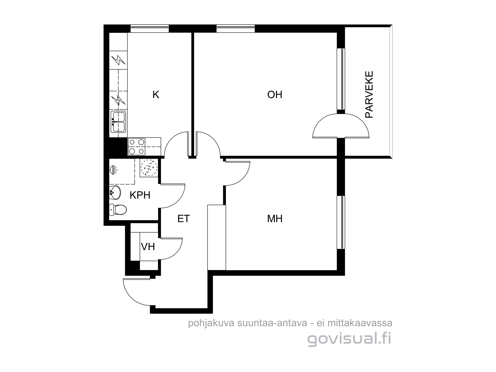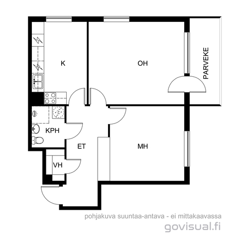 Makuuhuone itään. Keittiö pohjoiseen. Olohuoneesta pohjoiseen, että itään.