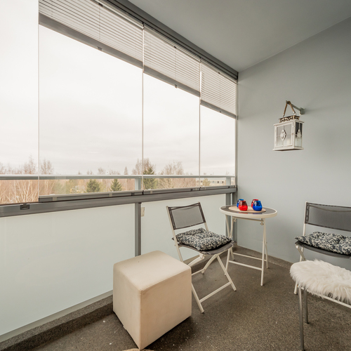 Isosta olohuoneesta on käynti lasitetulle ilta-auringon parvekkeelle, josta upeat esteettömät näkymät.