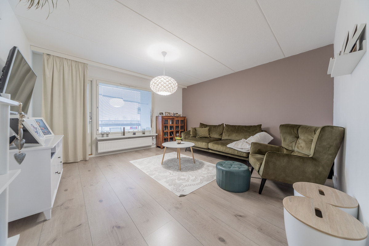 Tähän kauniiseen asuntoon pääsee kulkemaan esteettömästi uusitulla hissillä maantasalta.