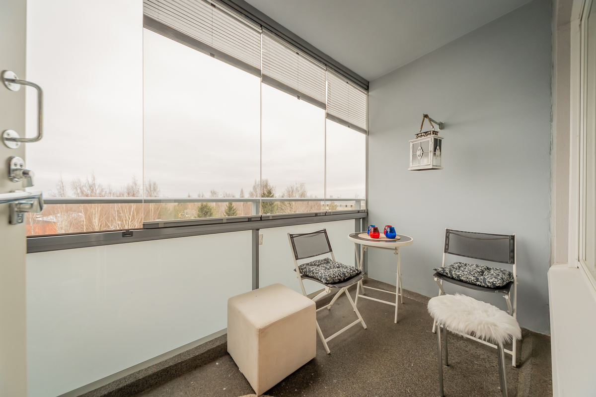 Näkymät huoneistosta/parvekkeelta: ylimmän kerroksen asunnosta esteettömät, puistomaiset näkymät