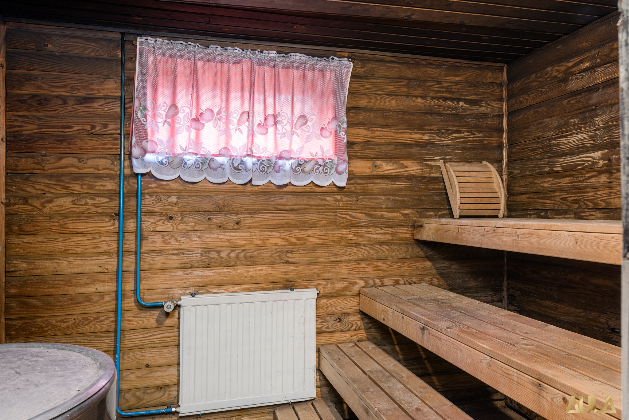 Varusteet: puukiuas, lattiakaivo, ikkuna ulos