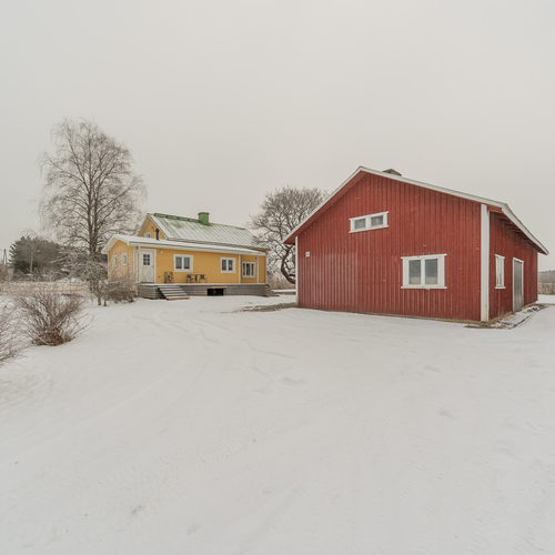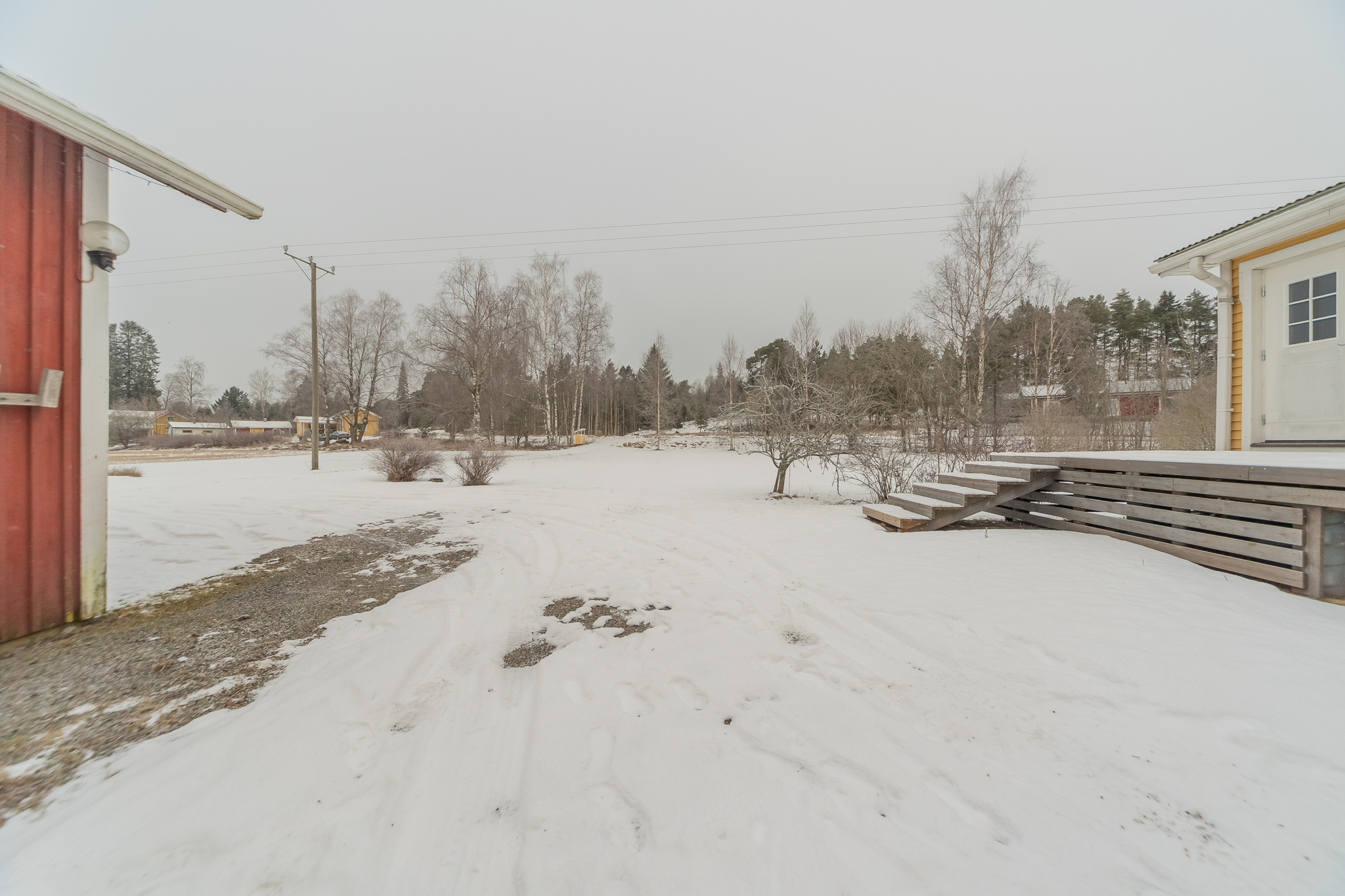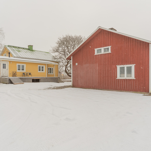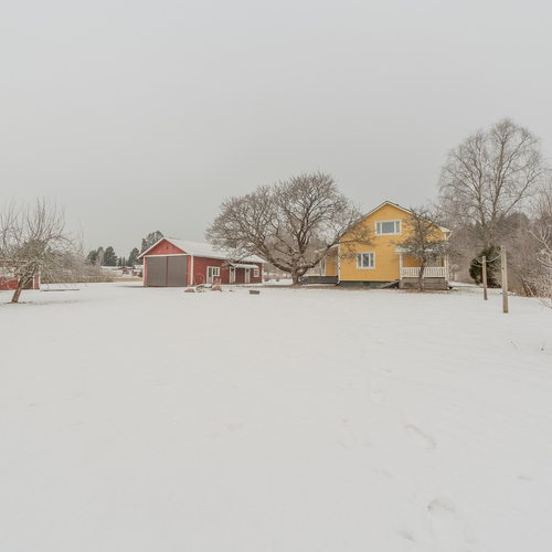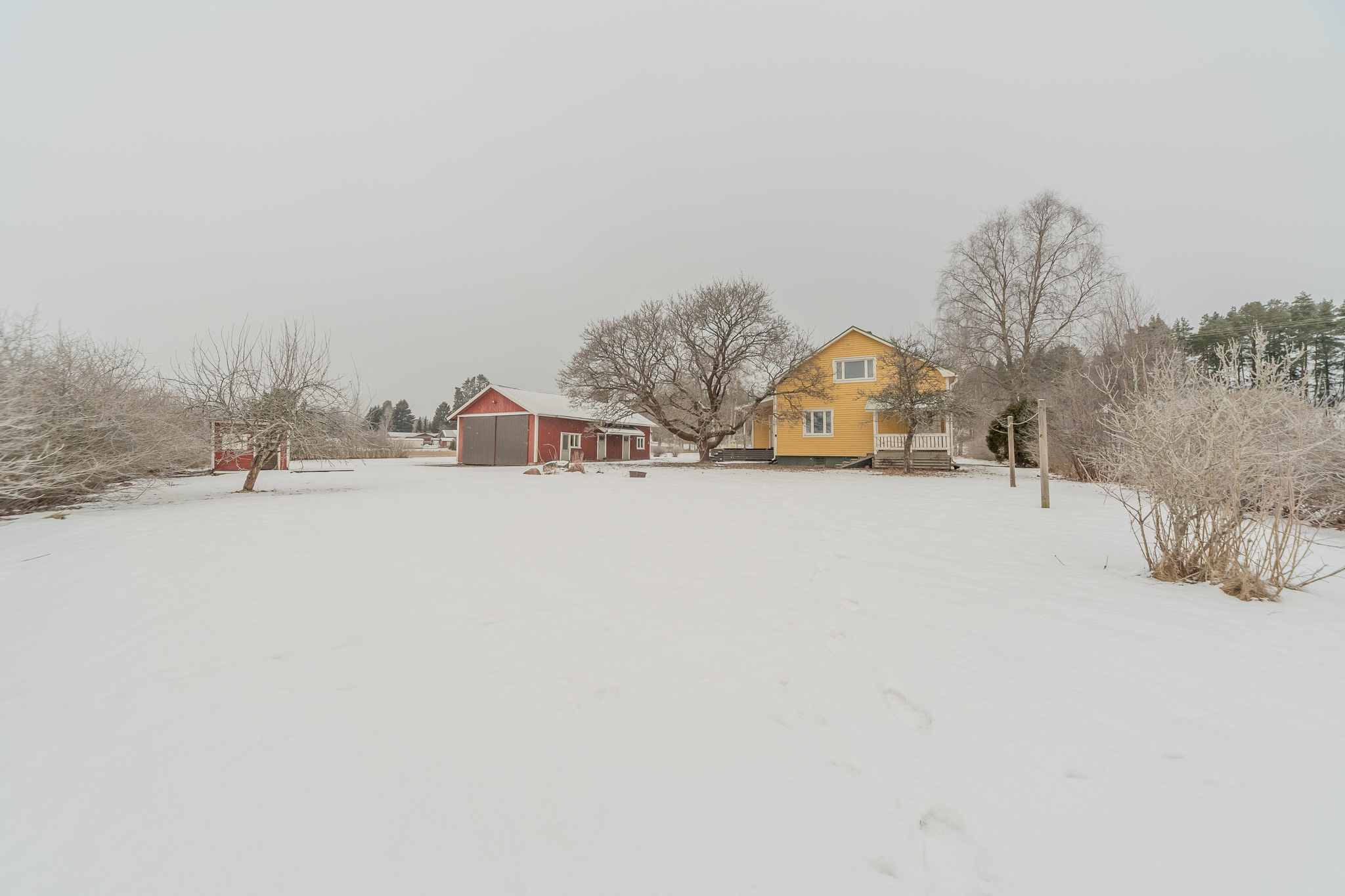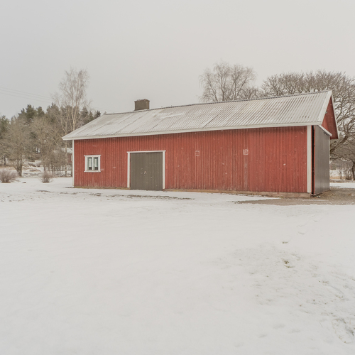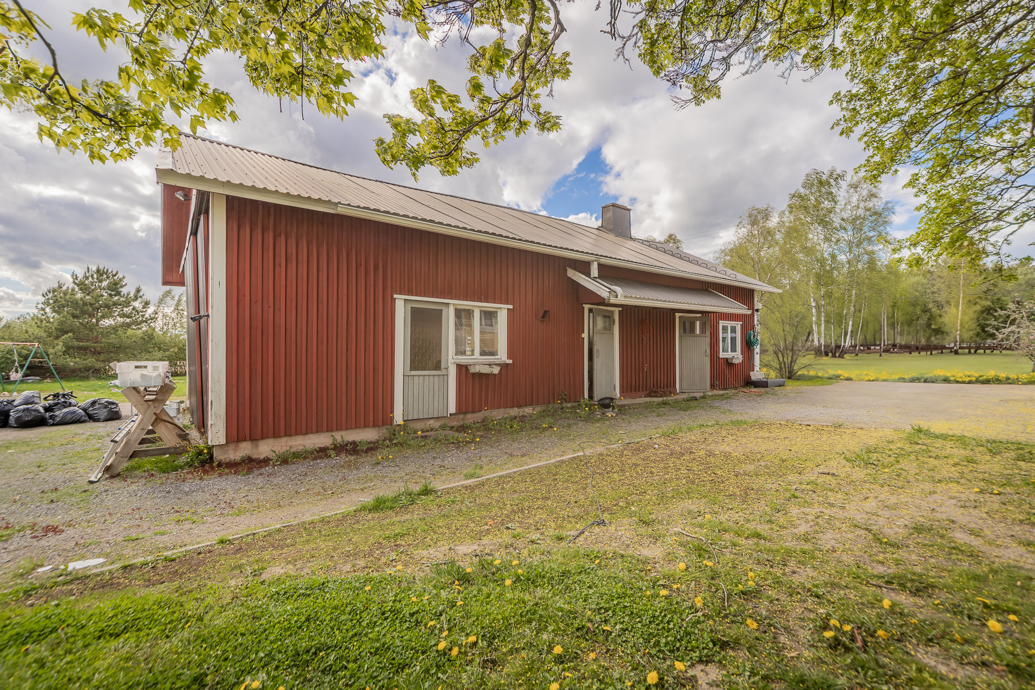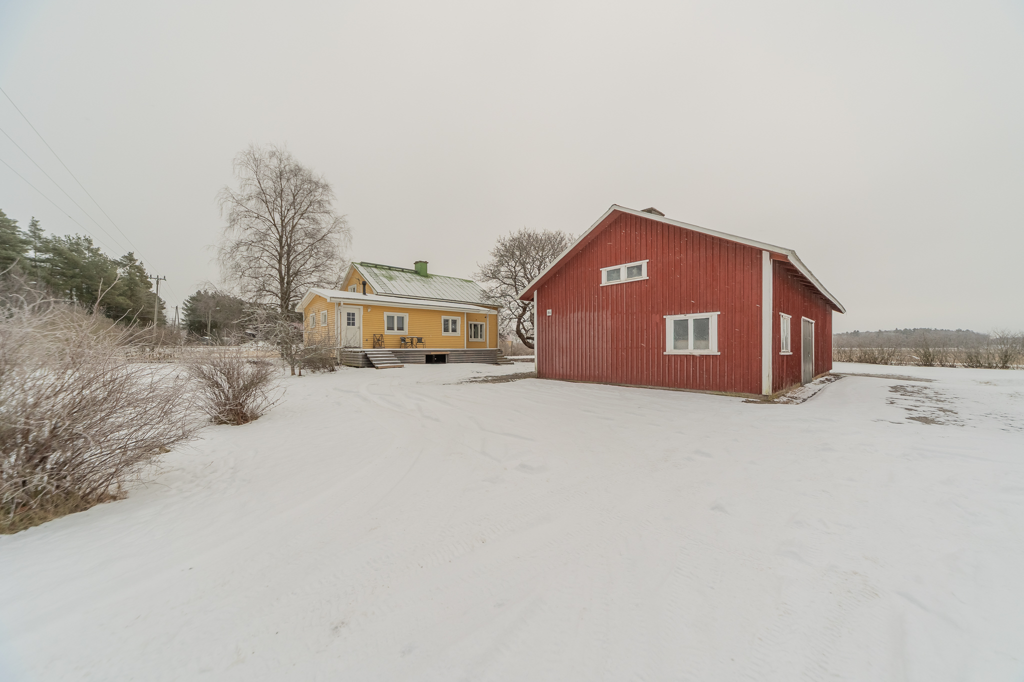 Pihassa on 70 m²:n suuruinen talousrakennus, jonka toisessa päädyssä iso autotalli, tien puoleisessa päädyssä varastotilaa.