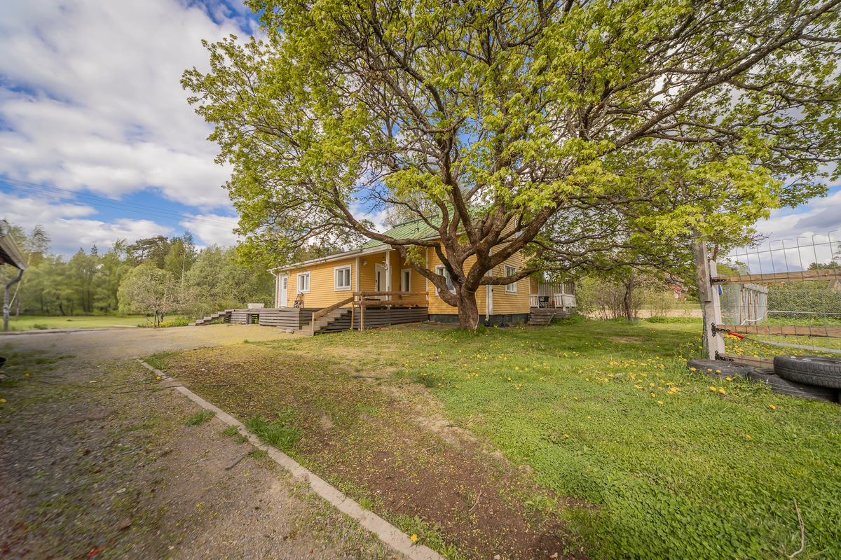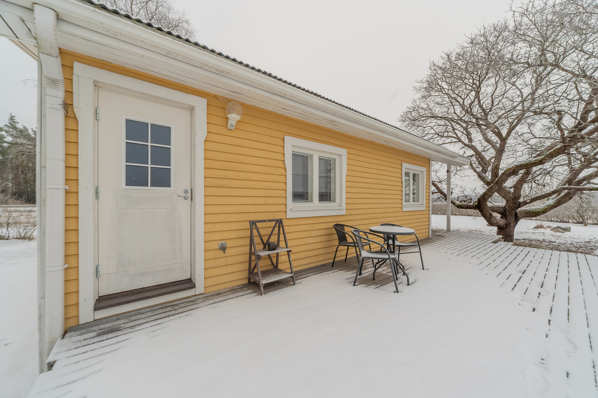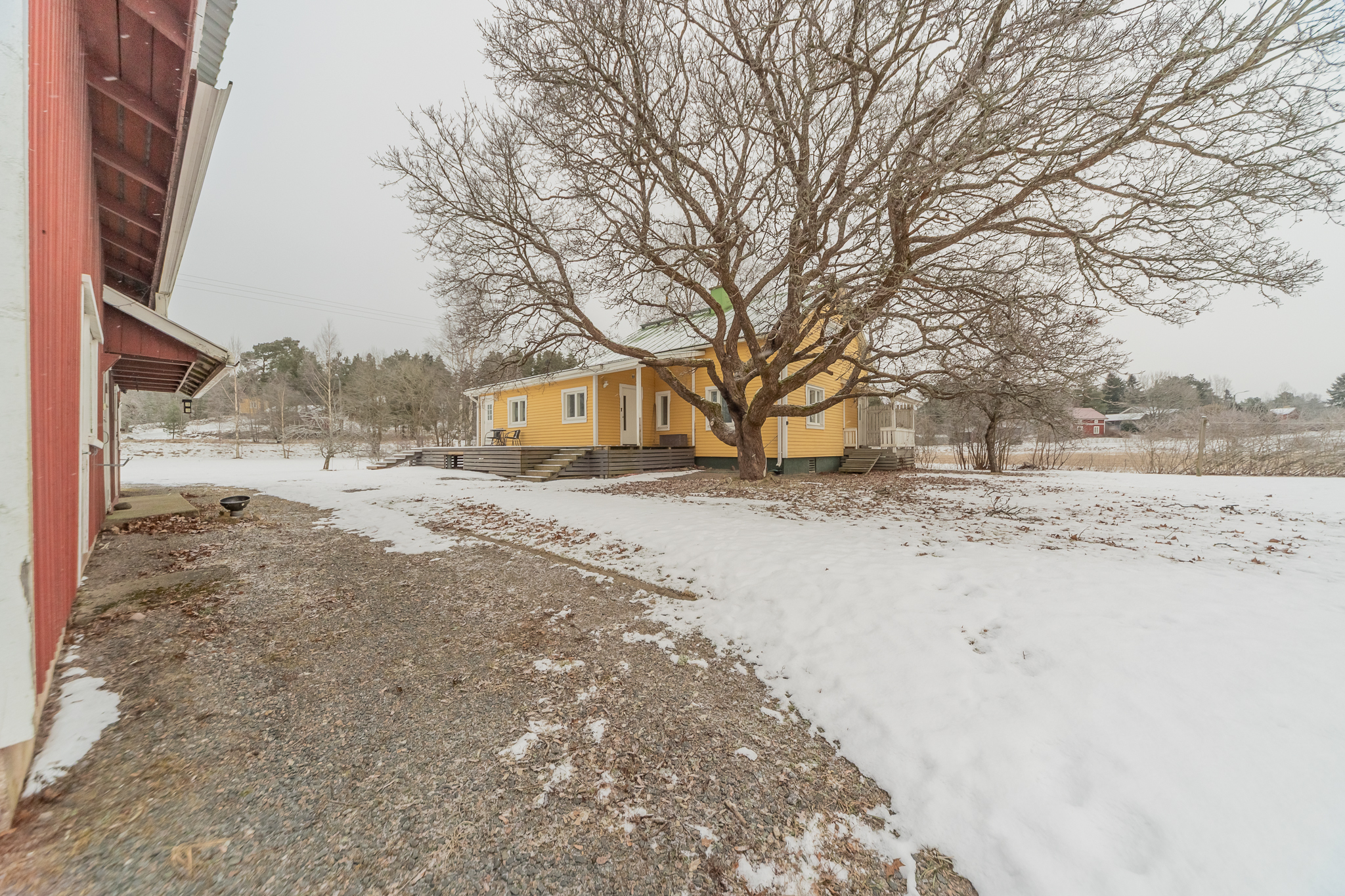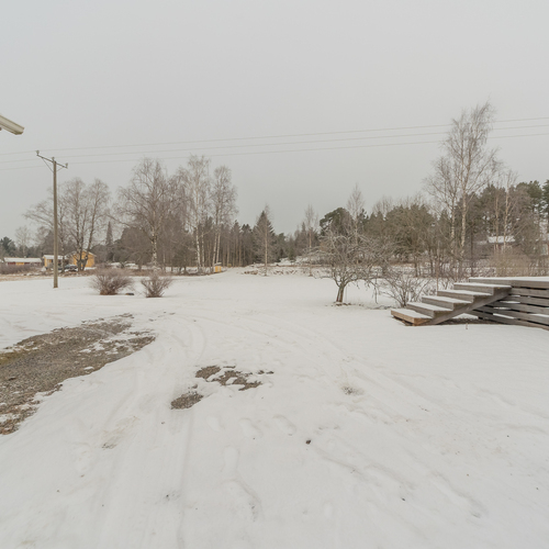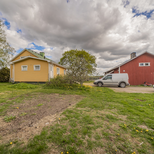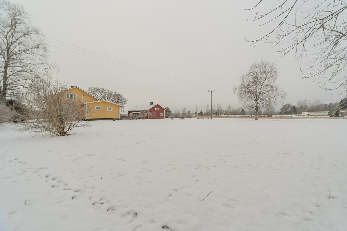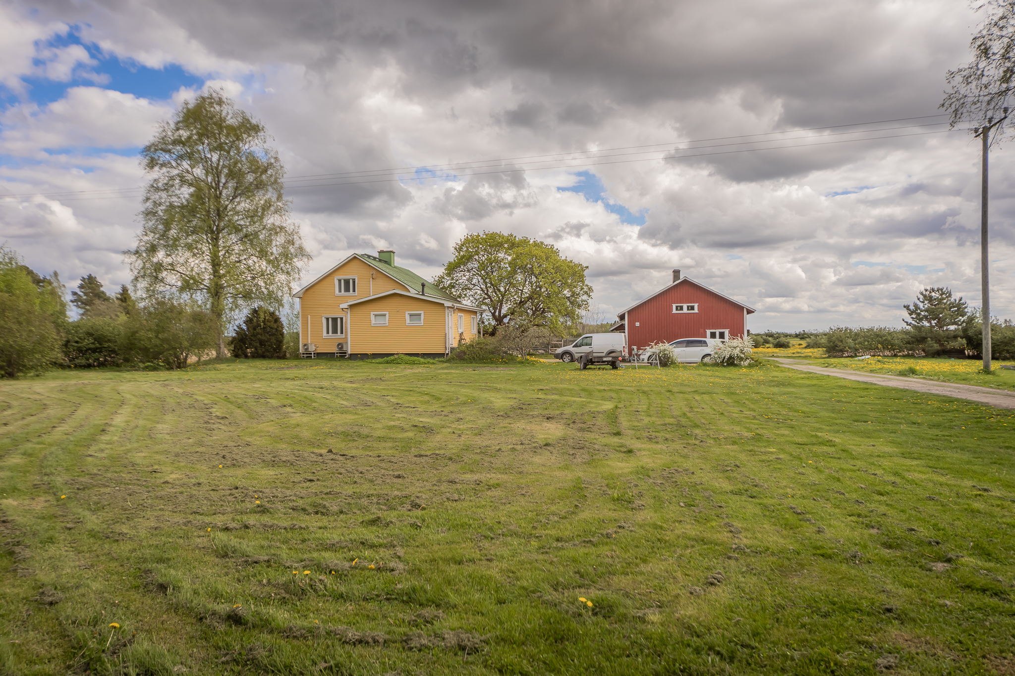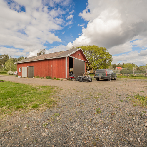 Pihassa on 70 m²:n suuruinen talousrakennus, jonka toisessa päädyssä iso autotalli, tien puoleisessa päädyssä varastotilaa.