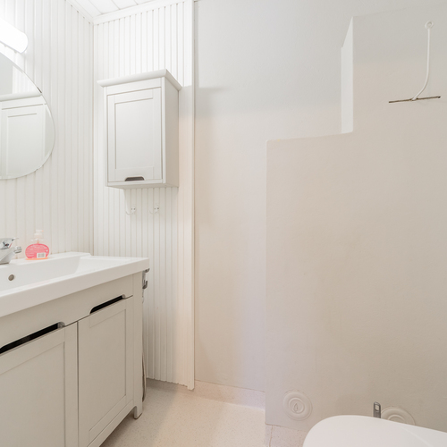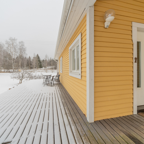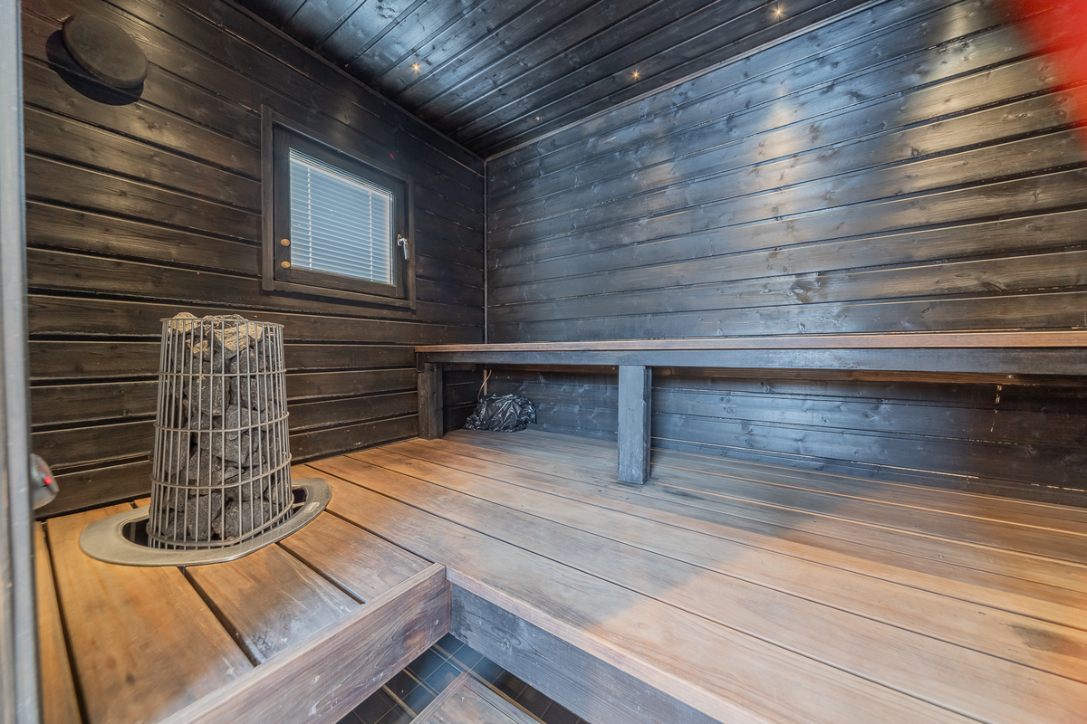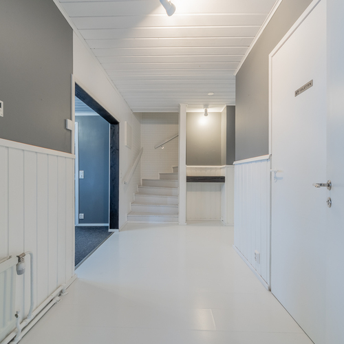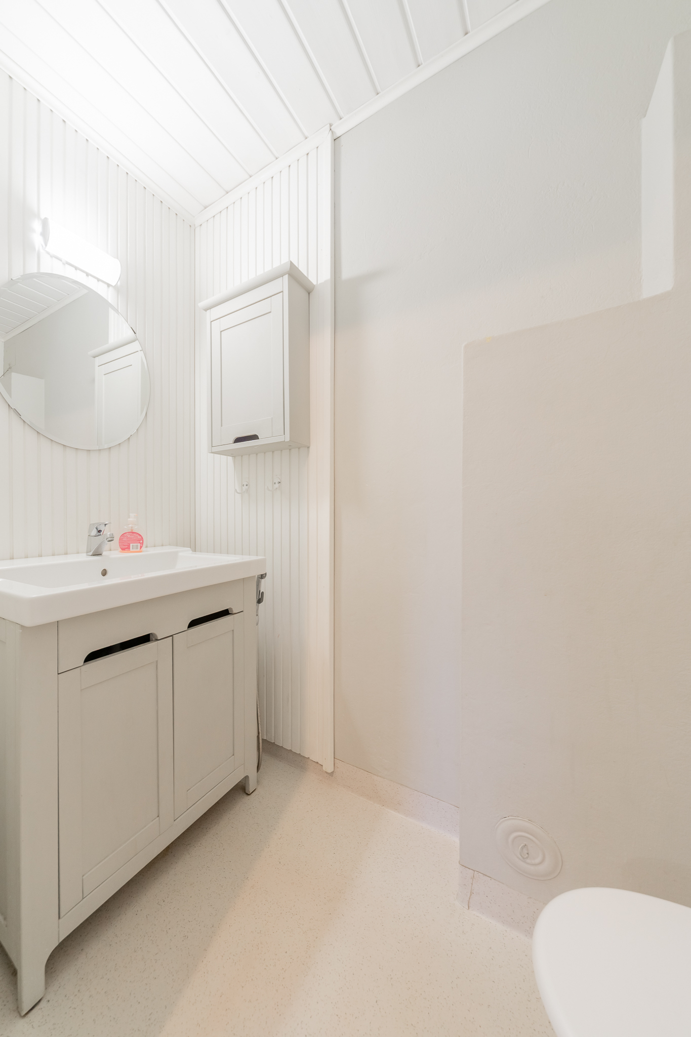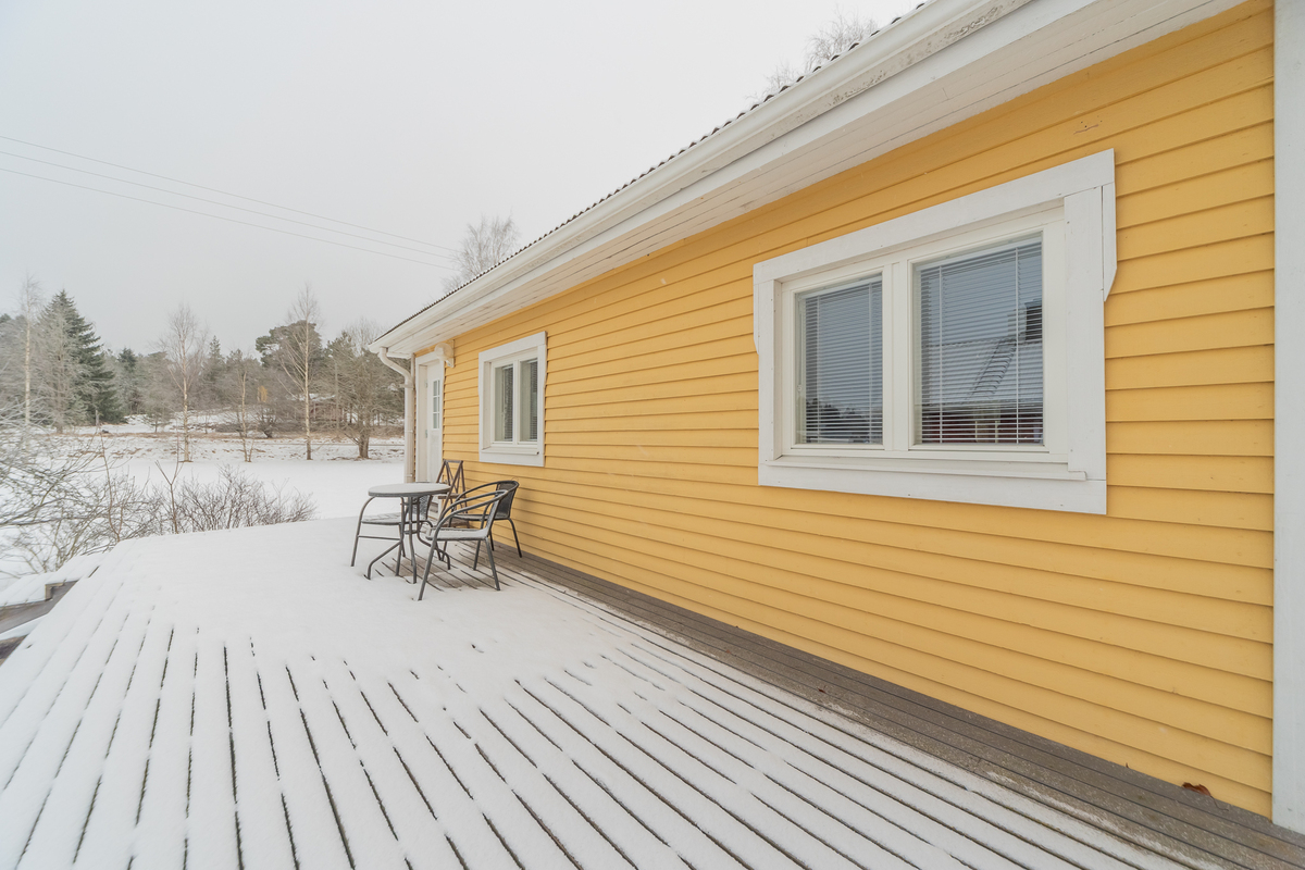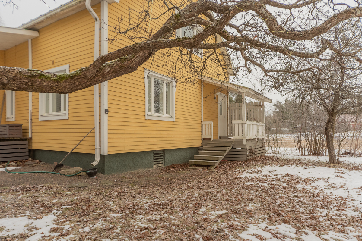 Isossa kodinhoitohuoneessa on mielekästä touhuta perheen pyykkihuollon kanssa, siellä lisäksi hyvin säilytystilaa. Kodinhoitohuoneesta käynti terassille. Hyväkuntoinen kylpyhuone tarjoaa laadukkaan kylpyhetken ja sauna muhevat löylyt. Eteistilassa on kalustettu wc.