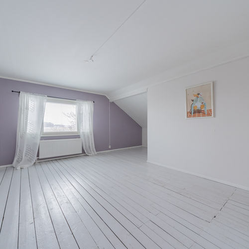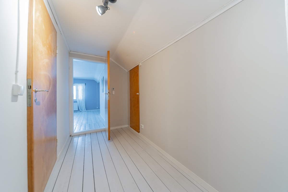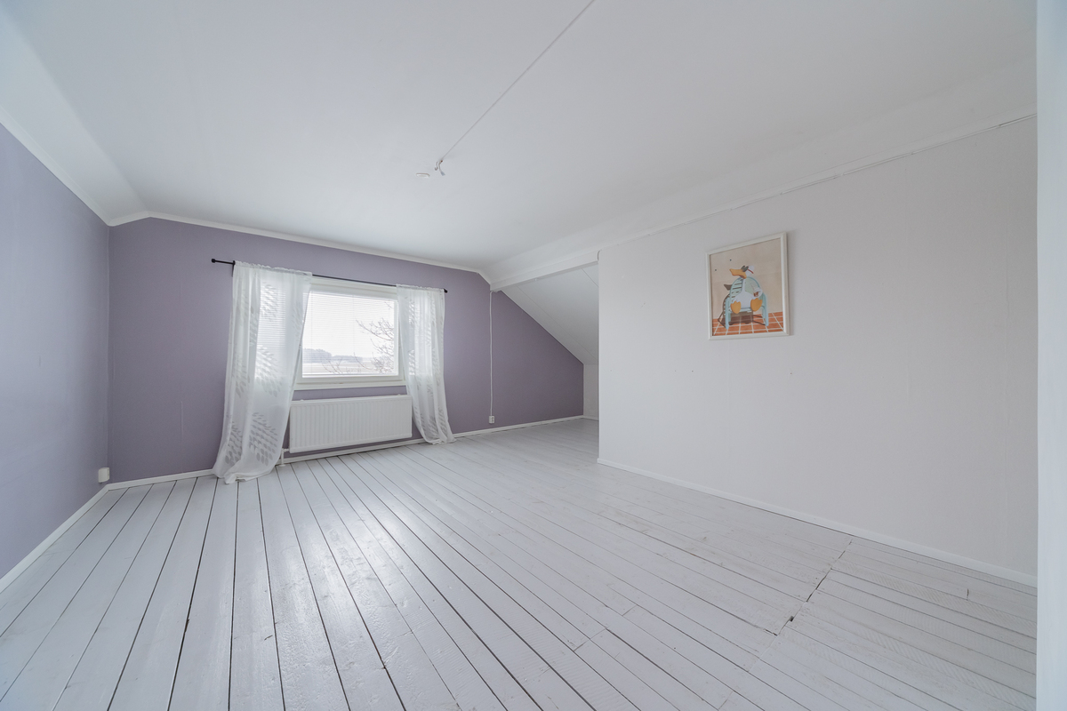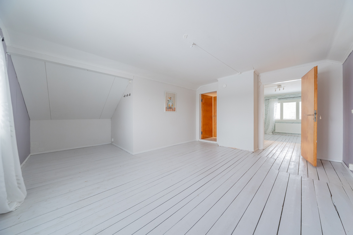 Yläkerrassa on talon kaksi reilunkokoista makuuhuonetta.