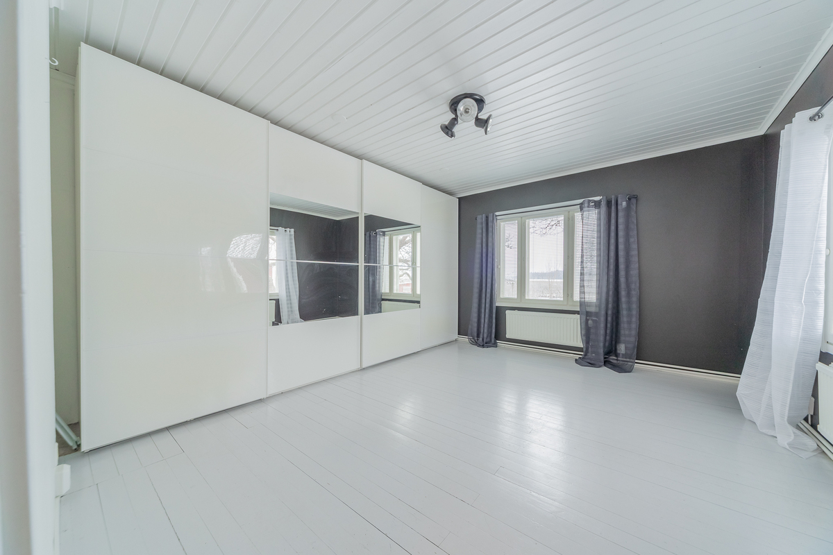Alakerrassa on yksi talon kolmesta makuuhuoneesta, liukuovikaapistolla varustettu.