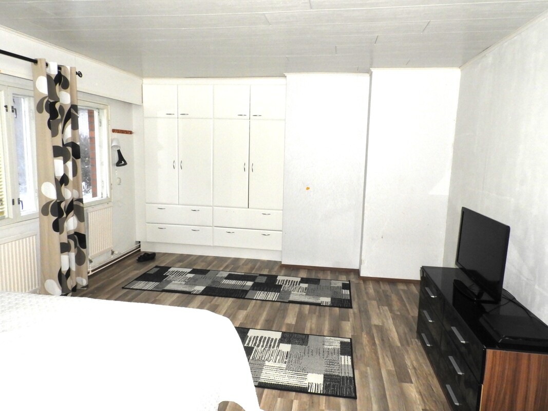 Makuuhuone 1: Lattiat laminaatti, seinät tapetti