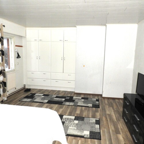 Makuuhuone 1: Lattiat laminaatti, seinät tapetti
