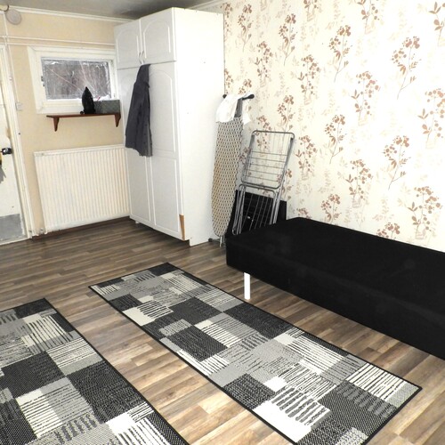 Makuuhuone 2: Lattiat laminaatti, seinät tapetti