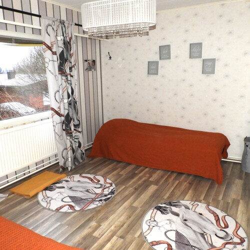 Makuuhuone 3: Lattiat laminaatti, seinät tapetti