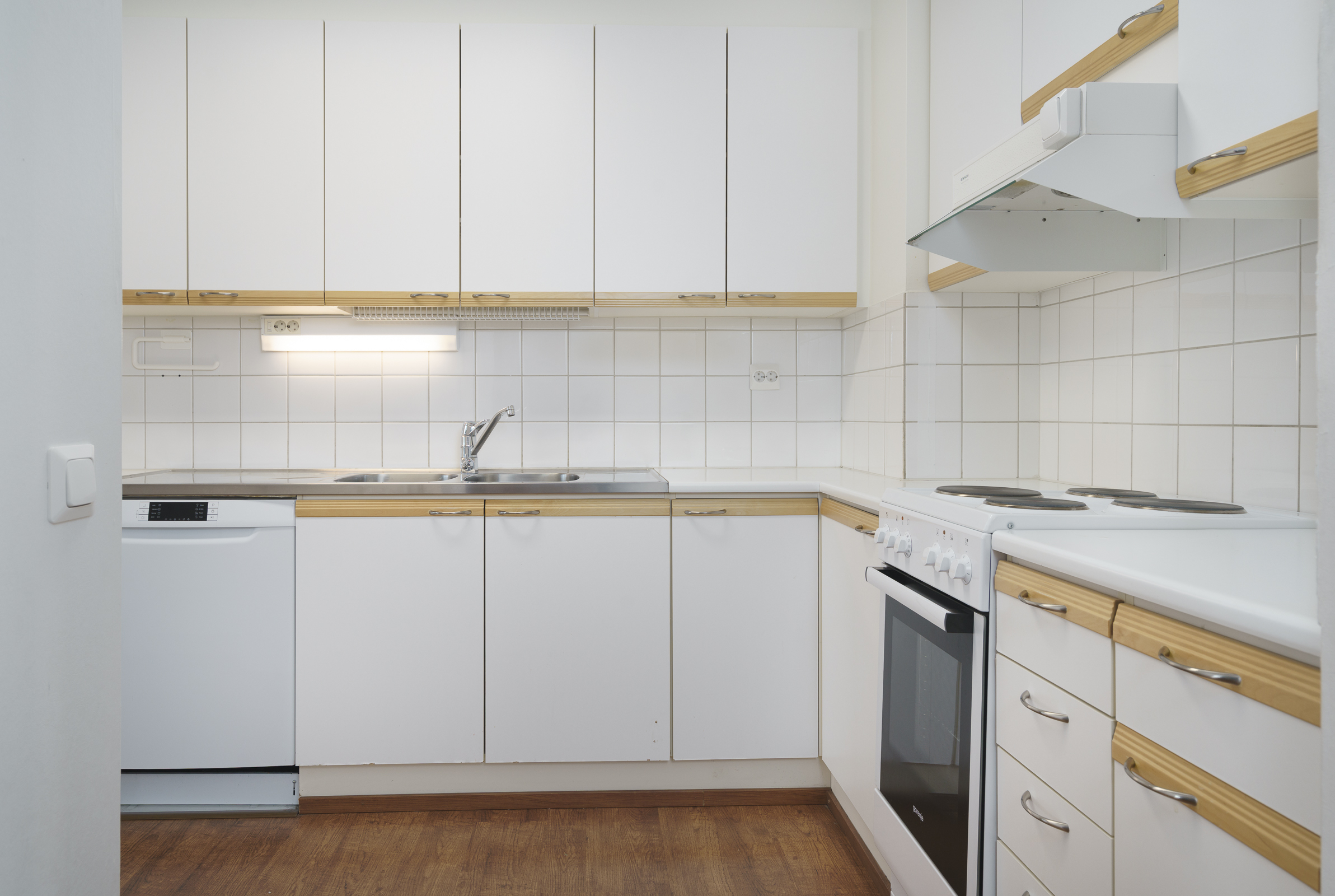 Keittiönkaapit eivät ole uudet. Seinät eivät ole ehkä kaikkien mielestä muuttovalmiit.