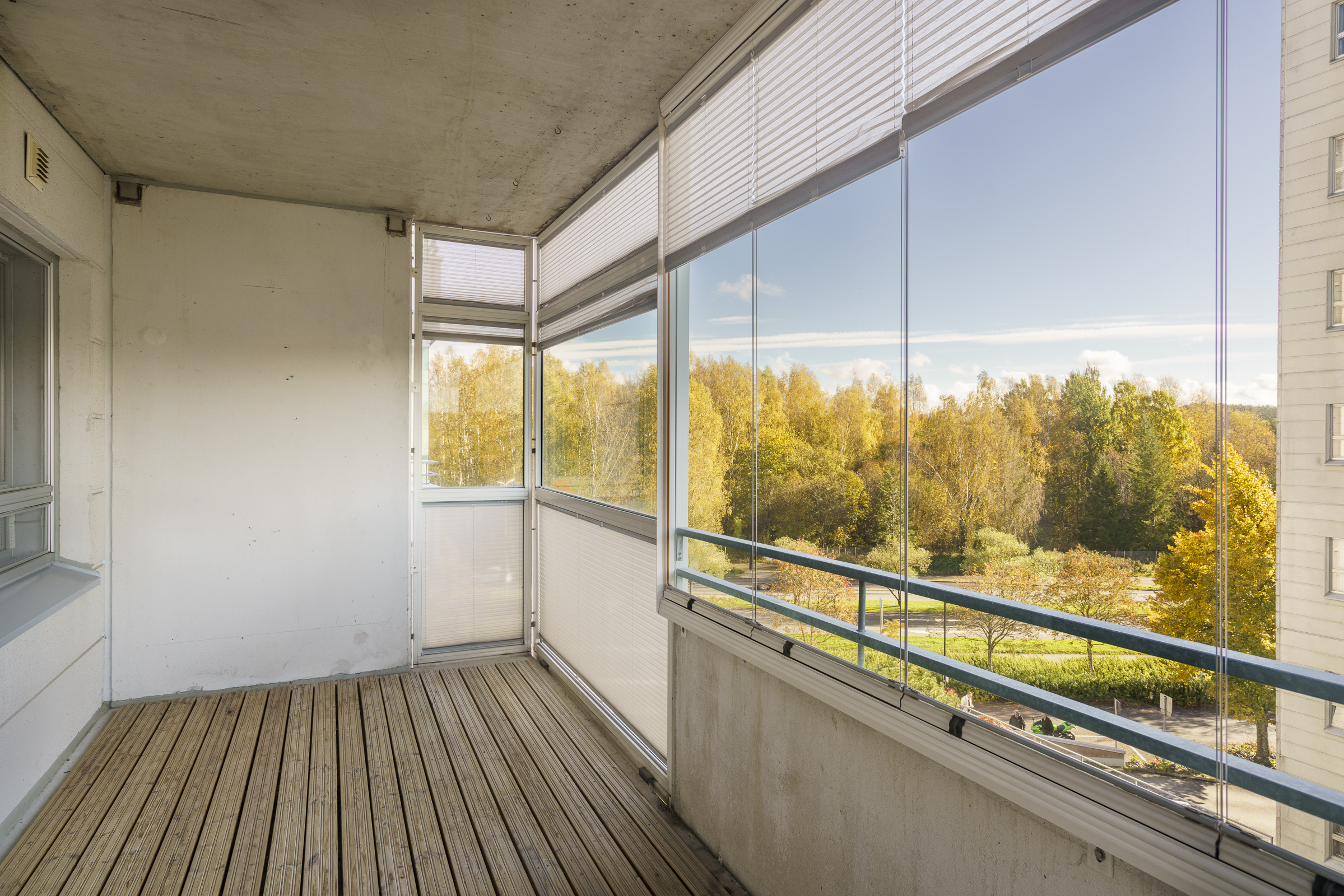 Hissitalon ylimmän kerroksen tilava kaksio läpitalon merellisin näkymin. Tilava lasitettu eteläparveke. Tässä kerroksessa on vain 2 asuntoa. Yhtiö on juuri saneeranut kaikki saunat ja kylpyhuoneet.