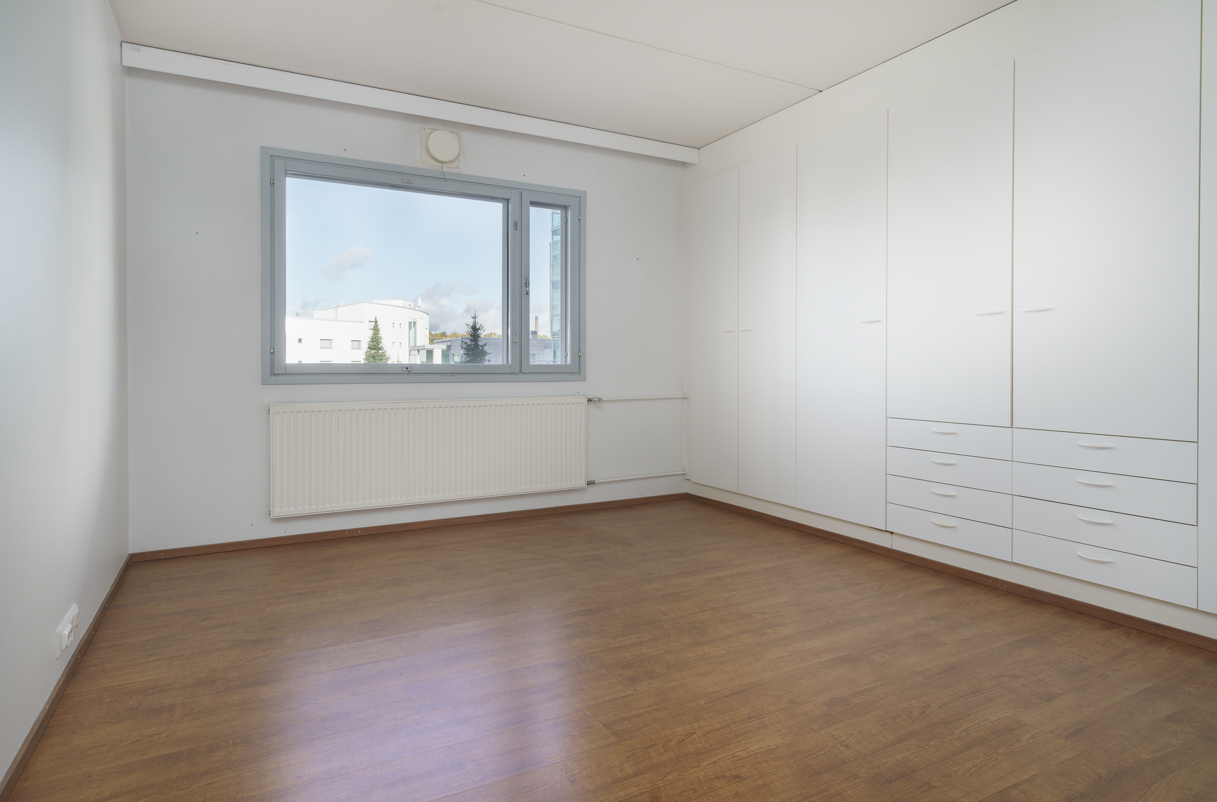 Pintamateriaalit: Seinät tapetoitu, laminaattilattia.