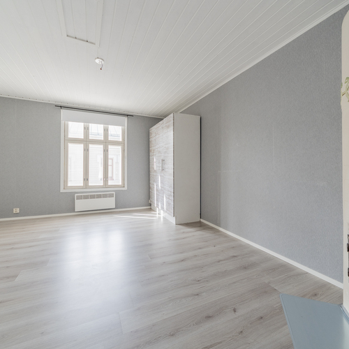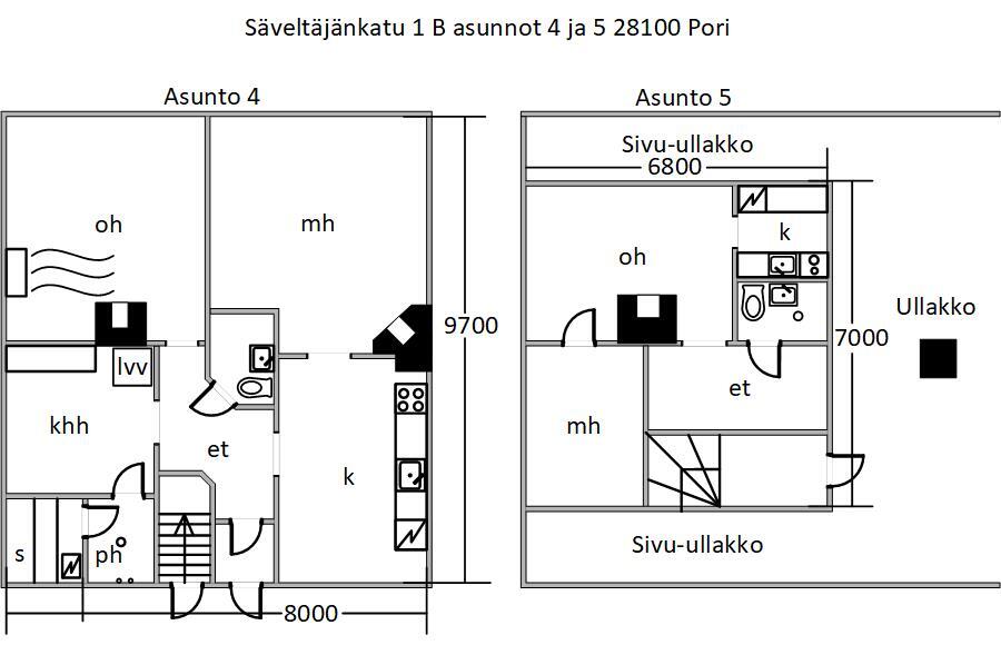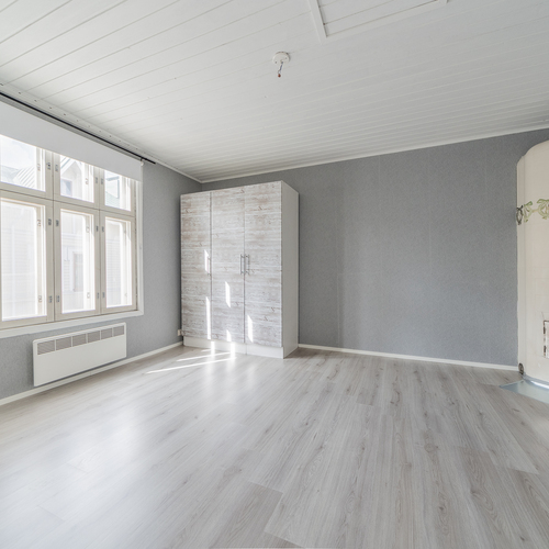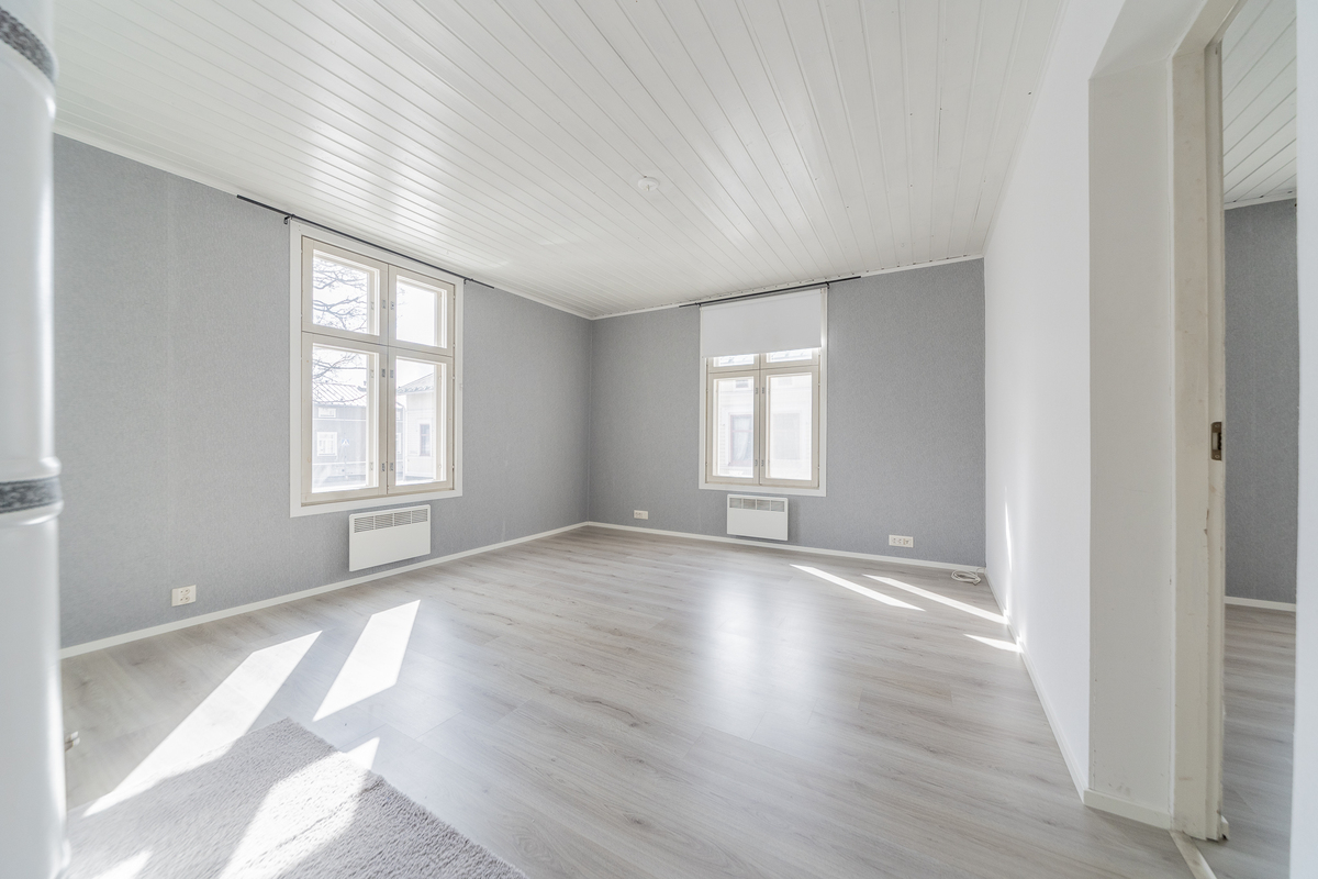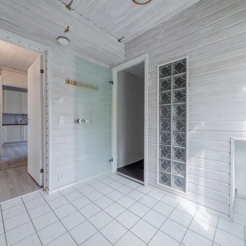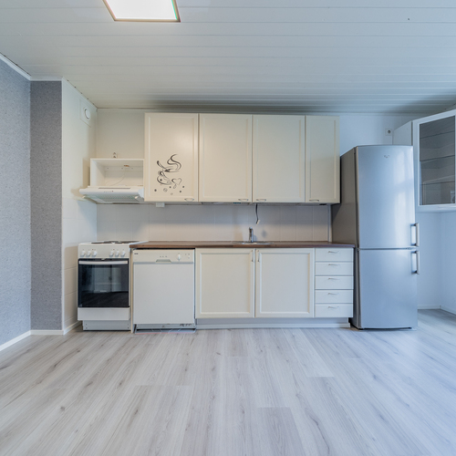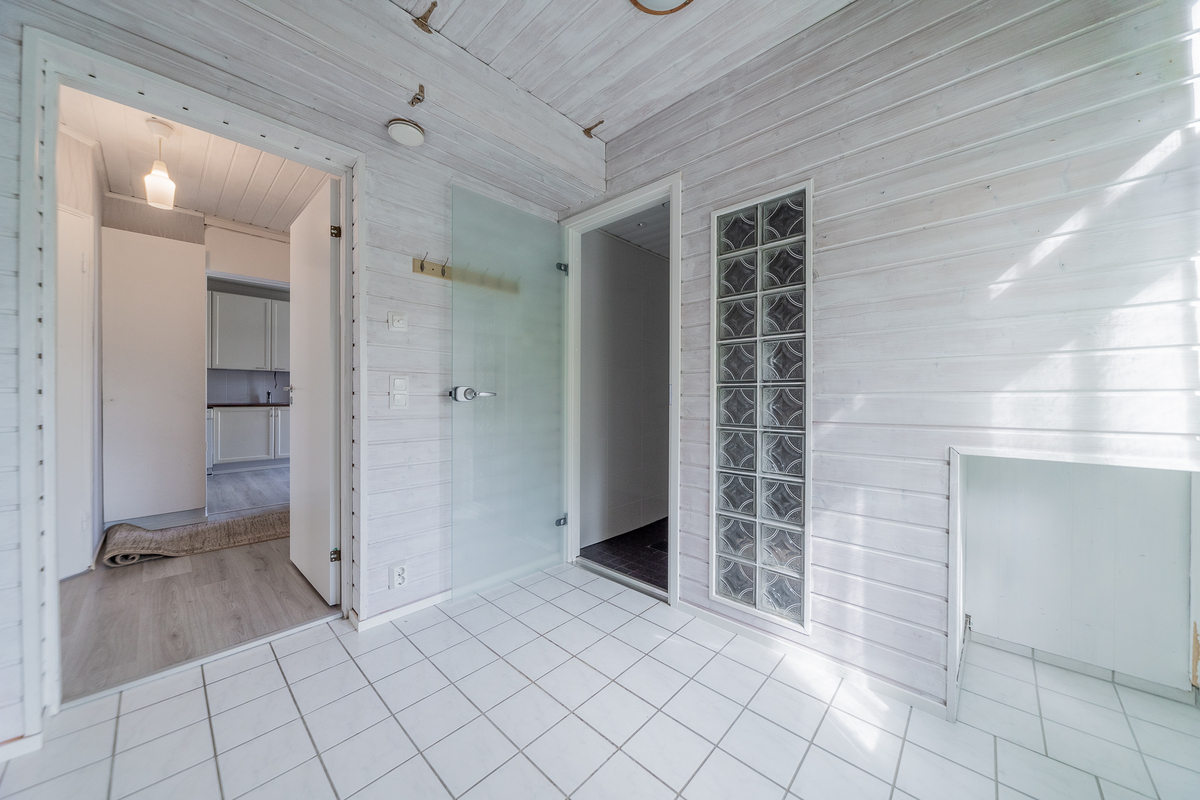 Asunto on hetki sitten remontoitu ja kylpyhuone-saunaosasto uusittu kokonaan. Asunnon tilava keittiö sijoittuu pihan puolelle, samoin sauna- ja pesutilat.