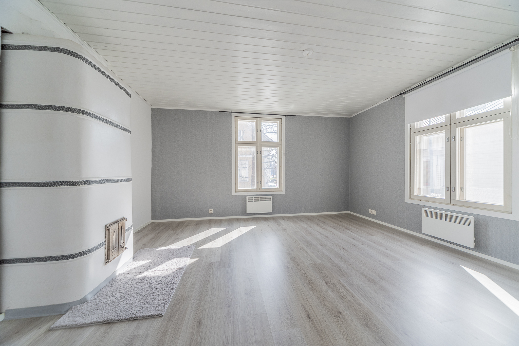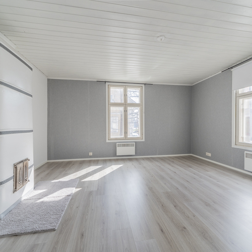 Asunnon olohuonetta koristaa kaunis takka, jolle ikä on tehnyt tepposensa, takassa voikin polttaa vain kynttilöitä. Makuuhuoneen kaunis kaakelitakka taas luo tunnelmaa ja tuoksua puiden räiskyessä sitten kun on kylmää tai tuuli tuivertaa. Olohuoneeseen on ihan hetki sitten asennettu ilmalämpöpumppu.