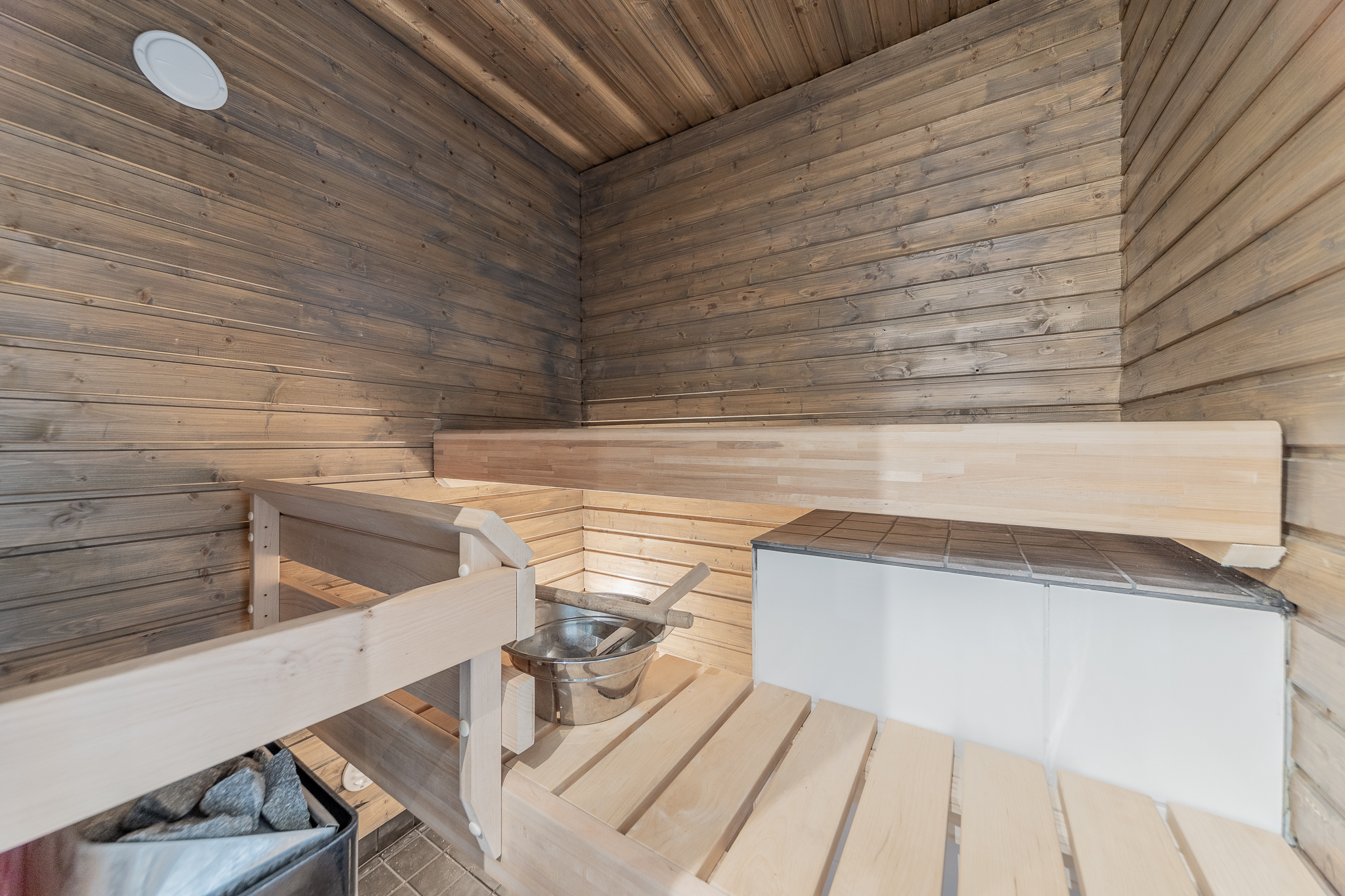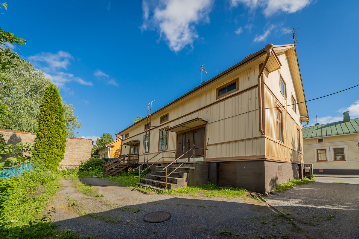Myytävään kokonaisuuteen kuuluu kaksi asuntoa. Alakerran asunnossa on makuuhuone, olohuone, keittiö, wc, kodinhoitohuone, kylpyhuone sekä sauna n. 65 m².