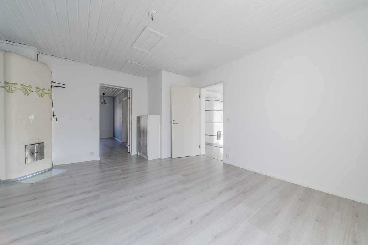 Alakerran olohuonetta koristaa kaunis takka, jolle ikä on tehnyt tepposensa, takassa voikin polttaa vain kynttilöitä, ikkunat kahteen ilmansuuntaan, seinillä tapetti/maali, laminaattilattia, uusi ilmalämpöpumppu; yläkerran olohuoneessa avotakka, seinillä maali, laminaattilattia