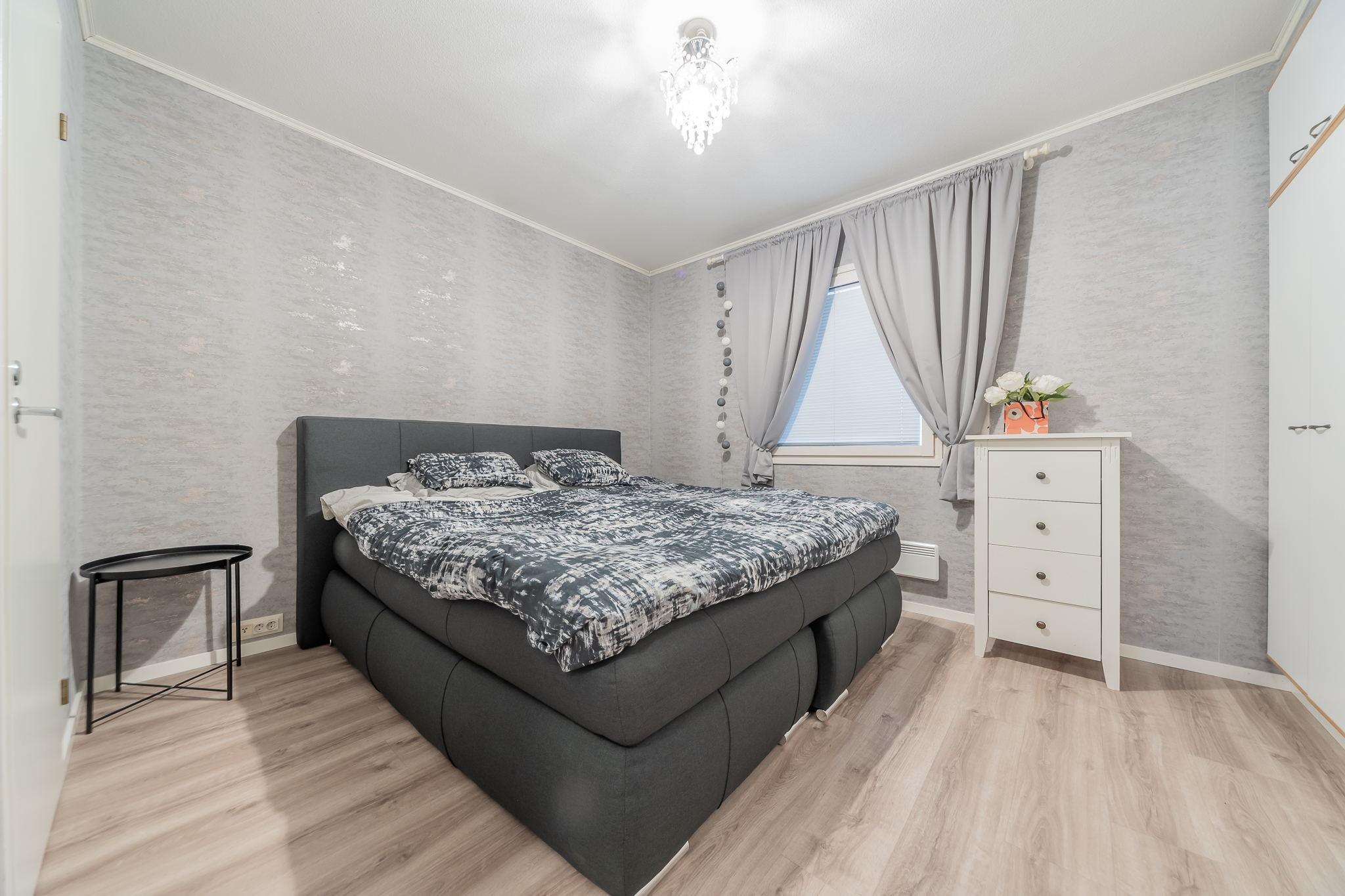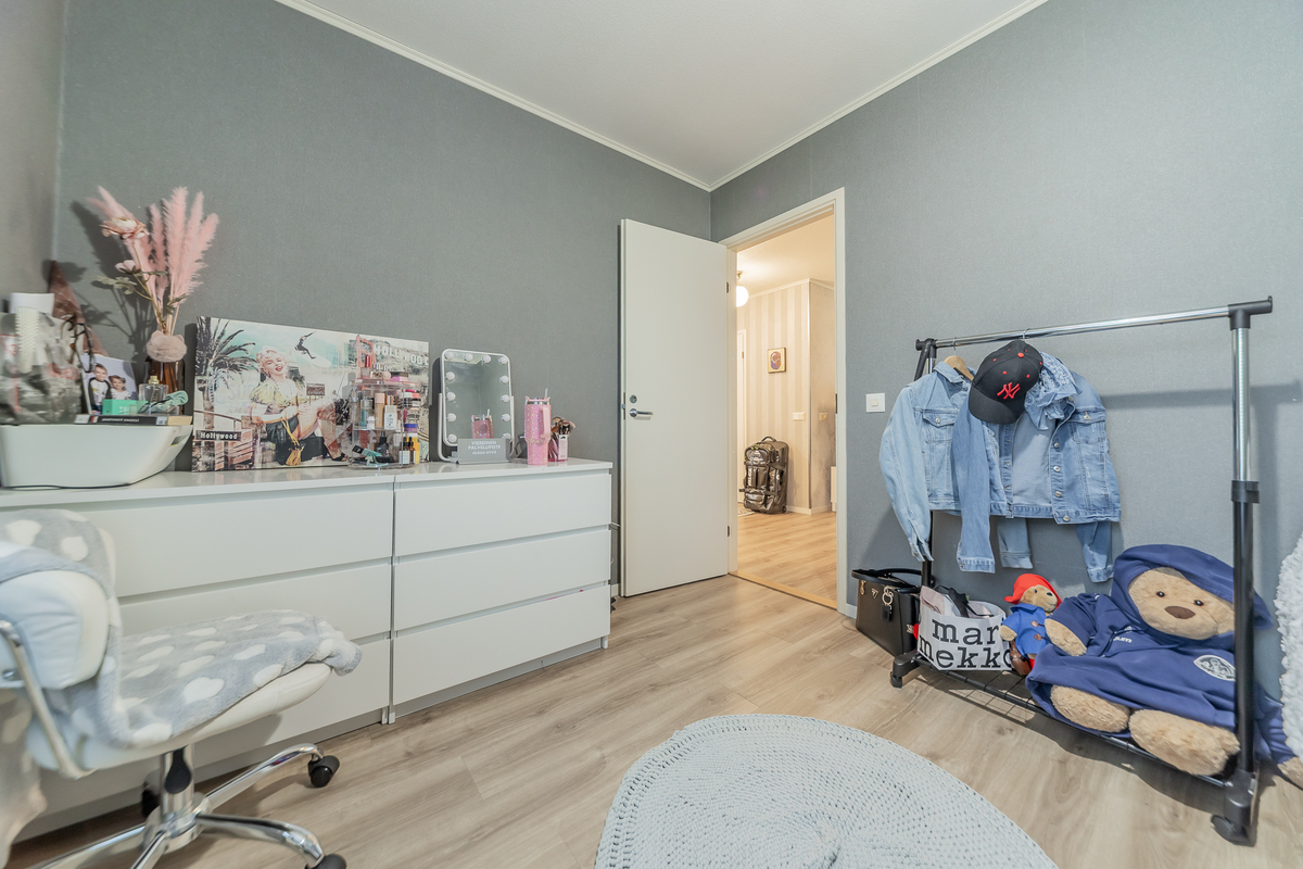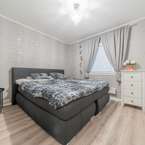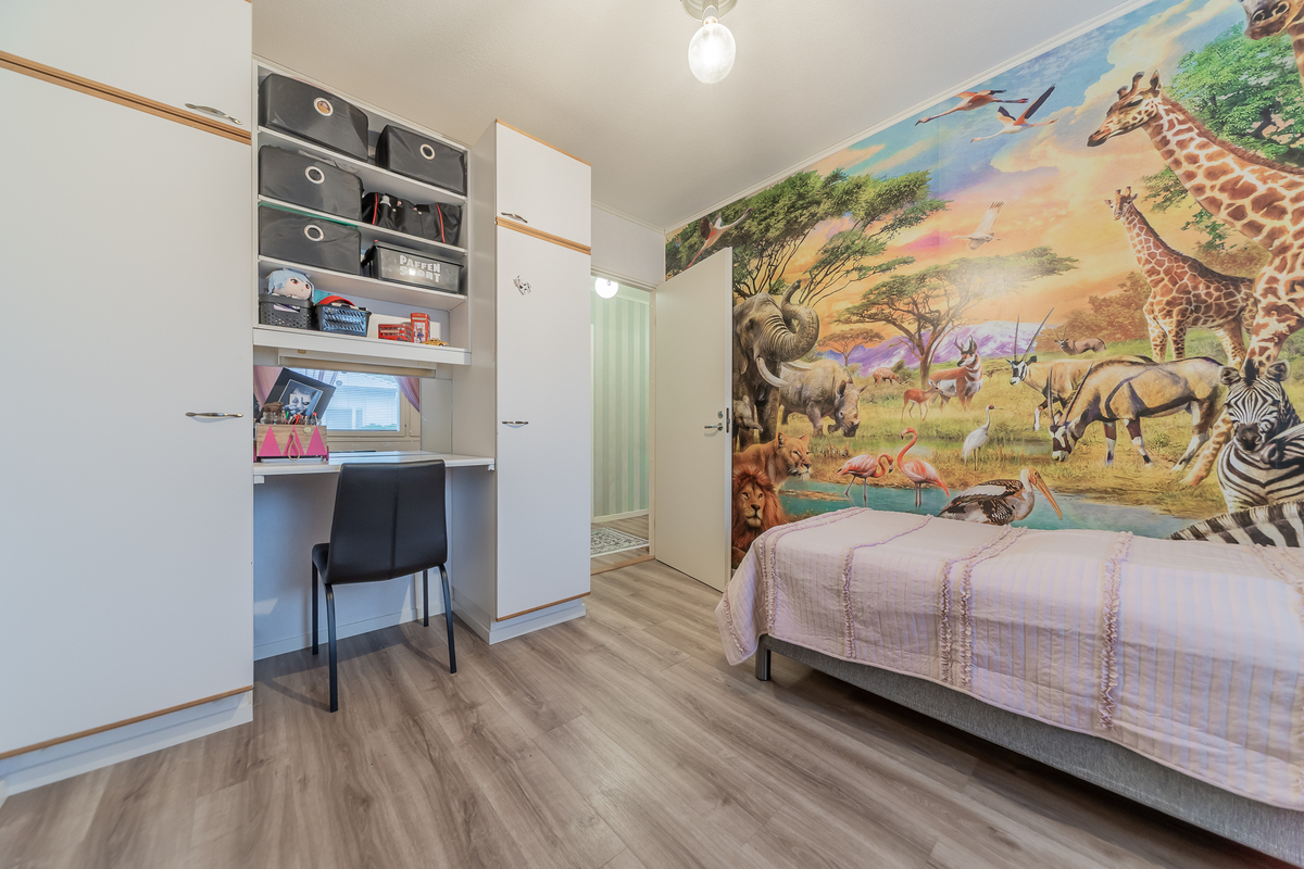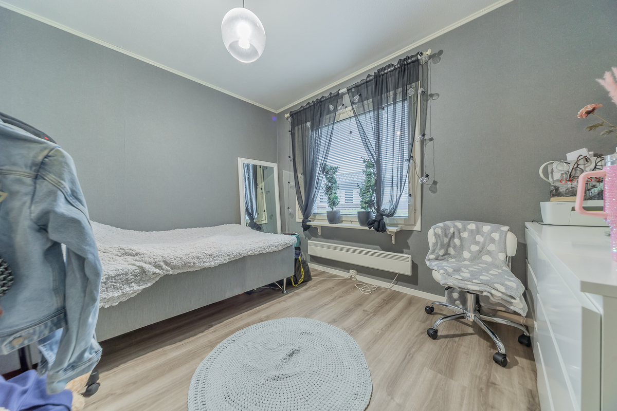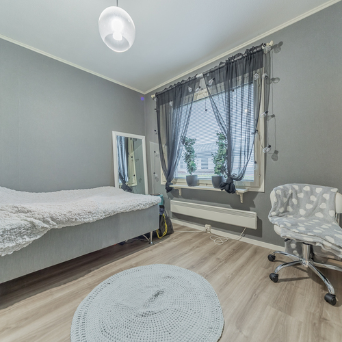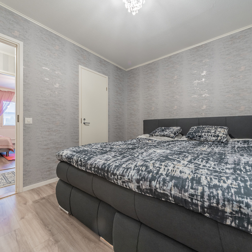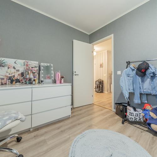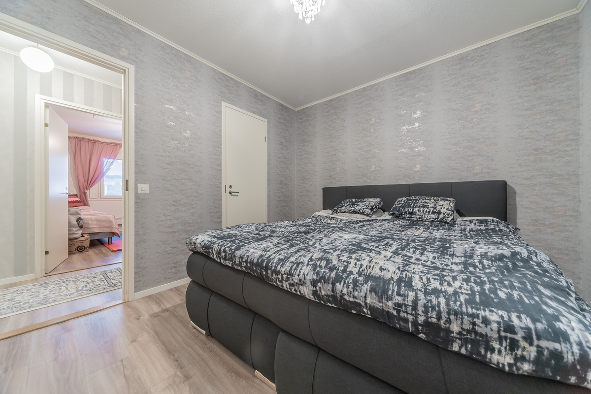 Kolme makuuhuonetta tarjoaa tilat isommallekin porukalle. Yhden makuuhuoneen yhteydessä on vaatehuone.