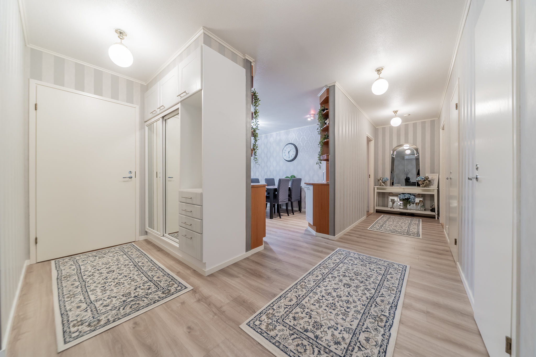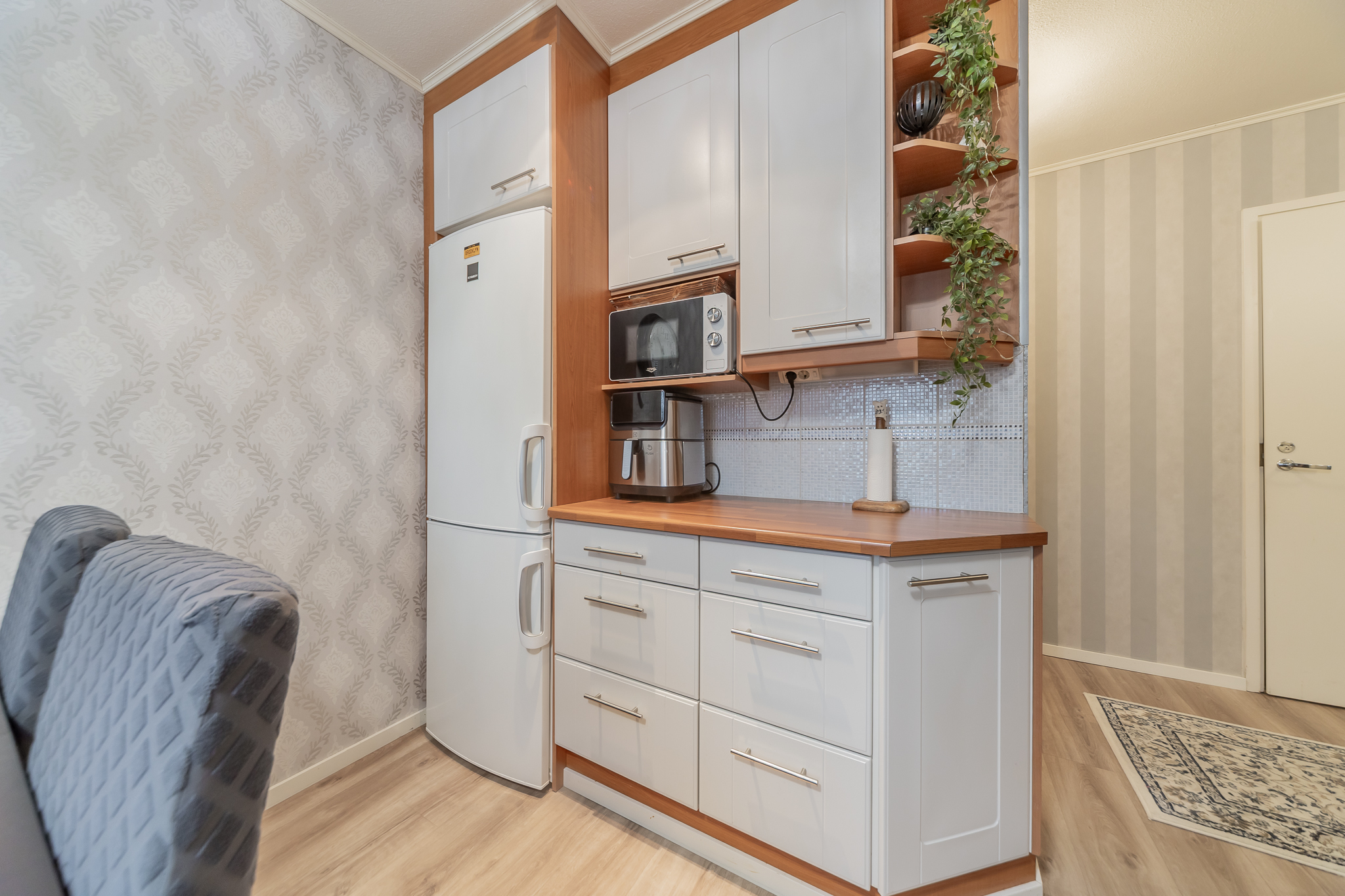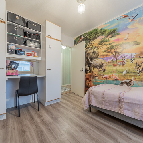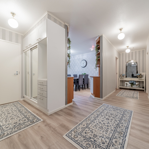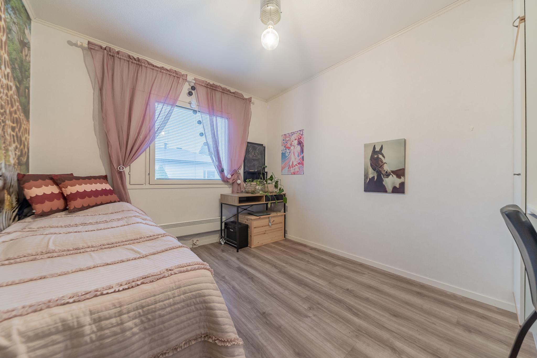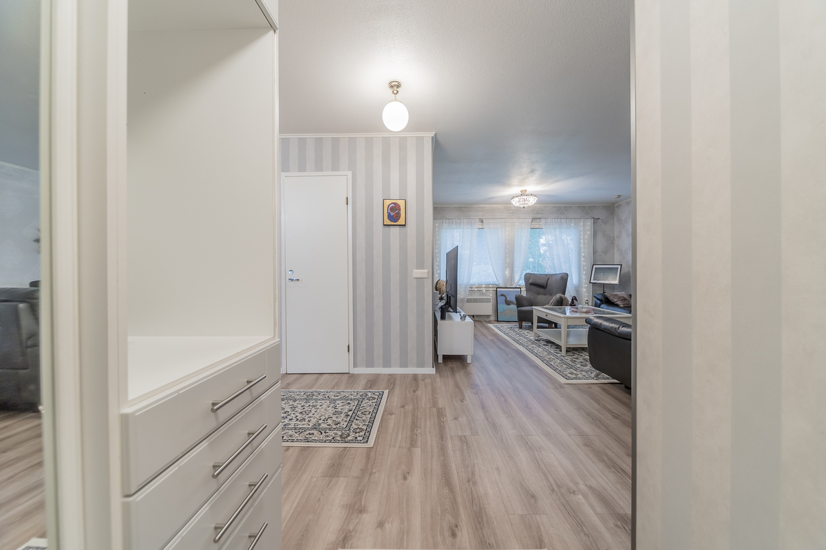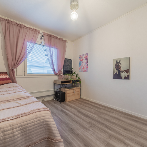 Kolme makuuhuonetta tarjoaa tilat isommallekin porukalle. Yhden makuuhuoneen yhteydessä on vaatehuone.