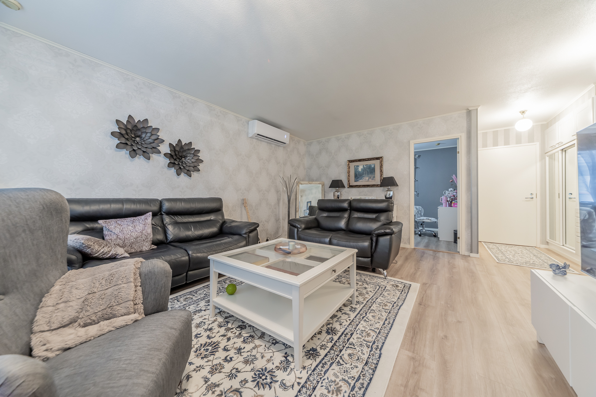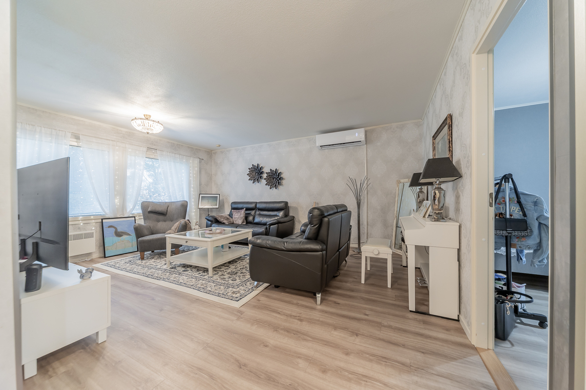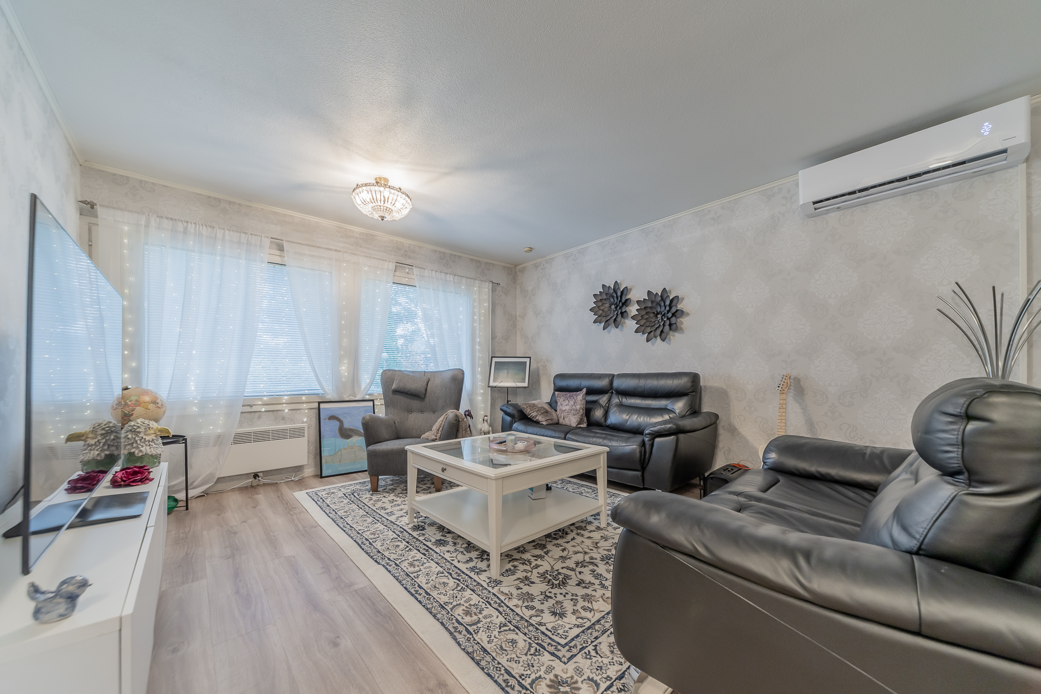 Valoisaan olohuoneeseen on asennettu kesällä ilmalämpöpumppu.
