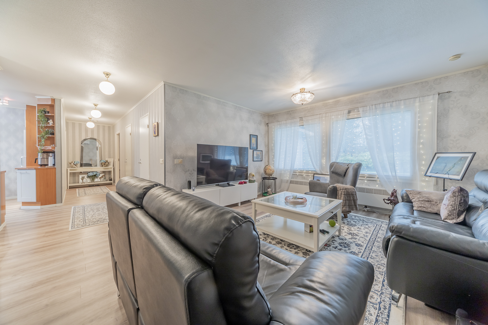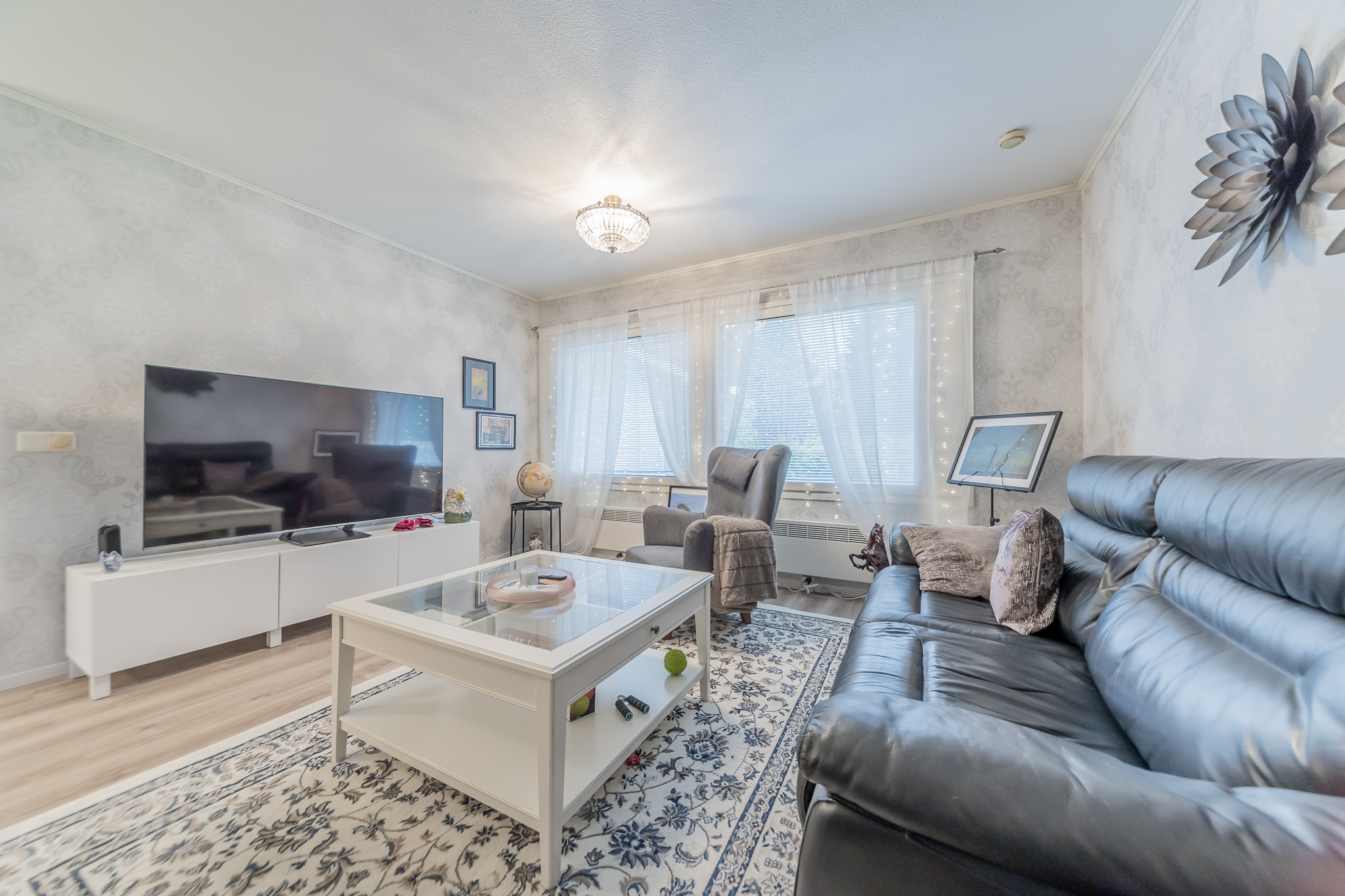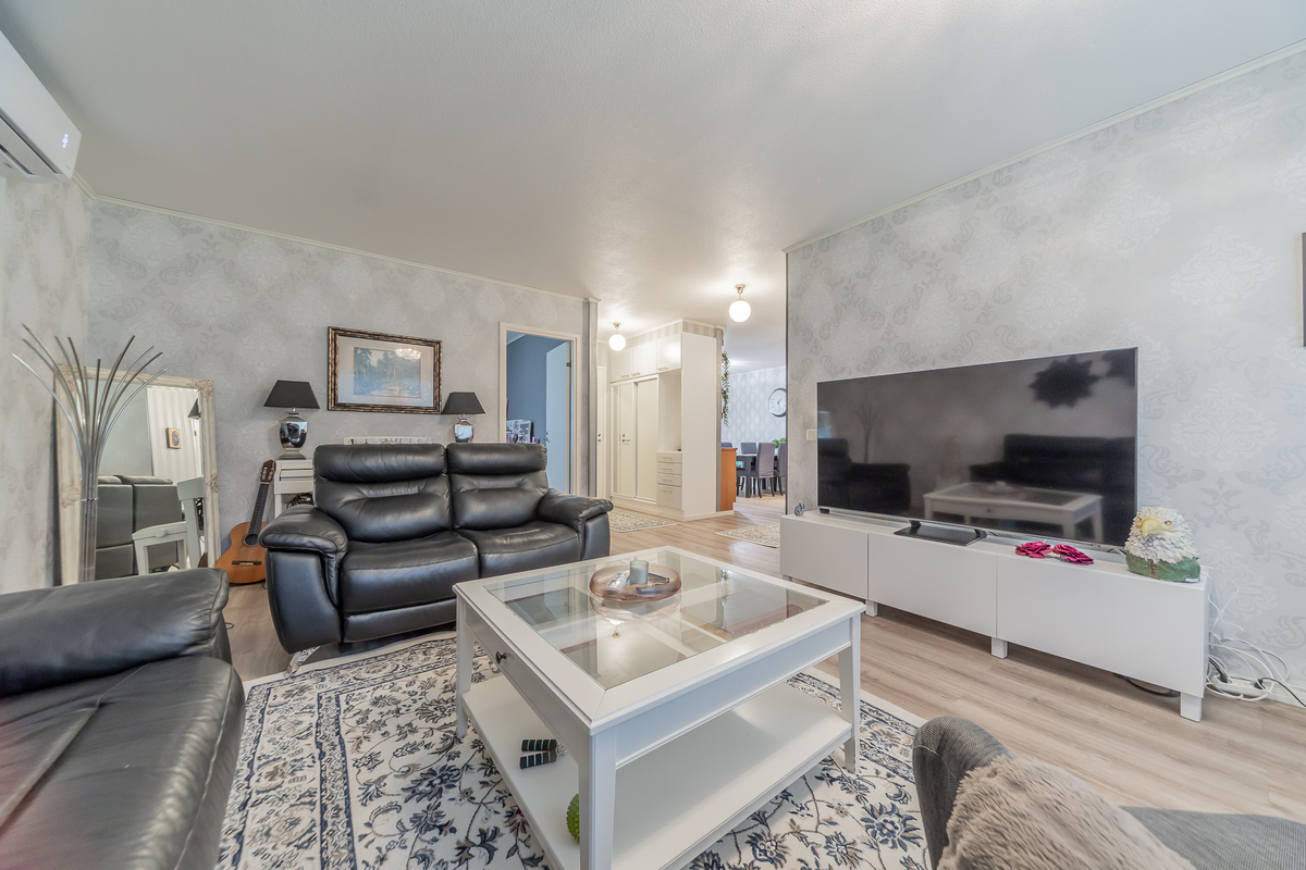 Valoisaan olohuoneeseen on asennettu kesällä ilmalämpöpumppu.