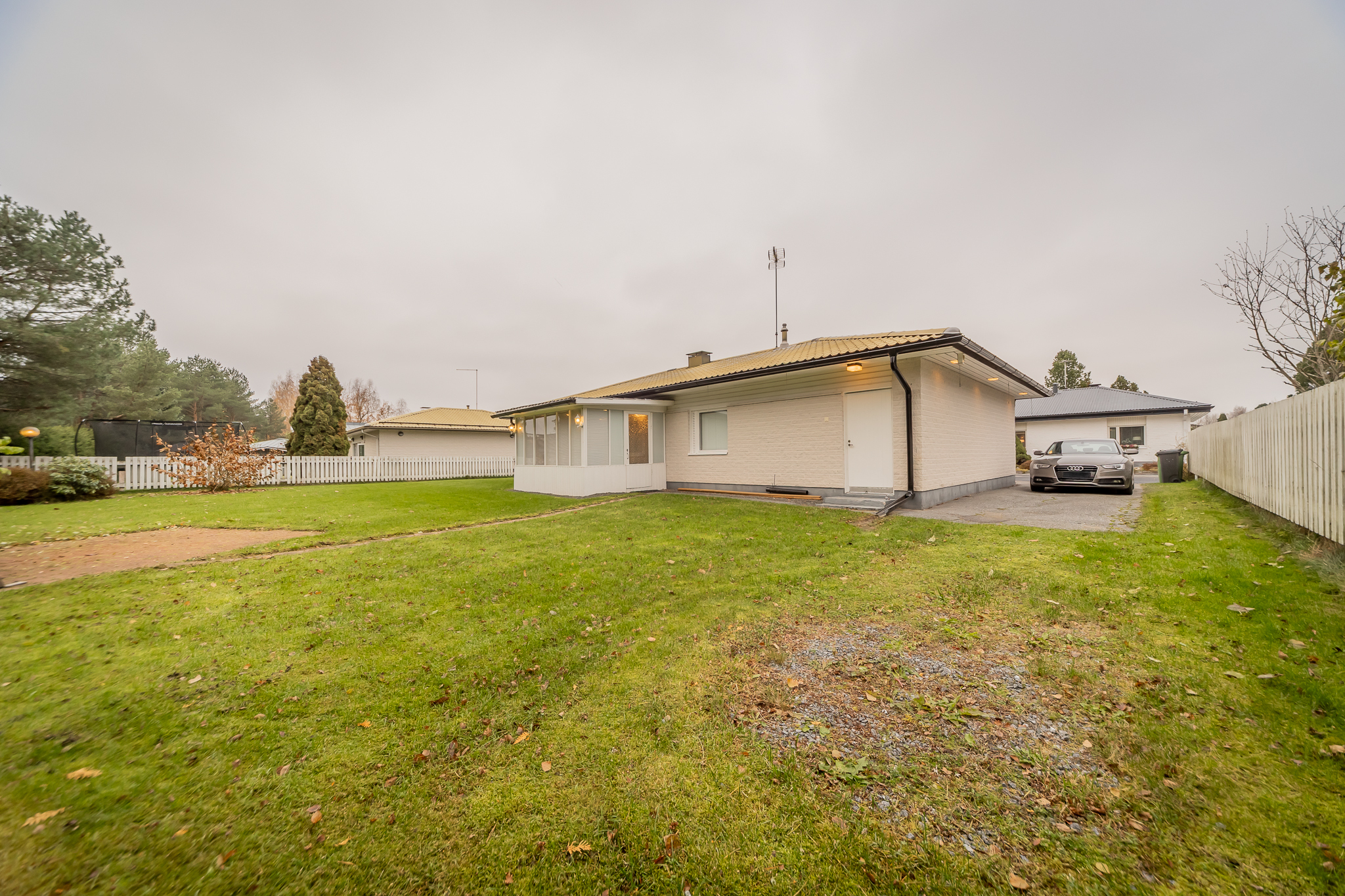 Talon päädyssä on autotalli ja varasto.