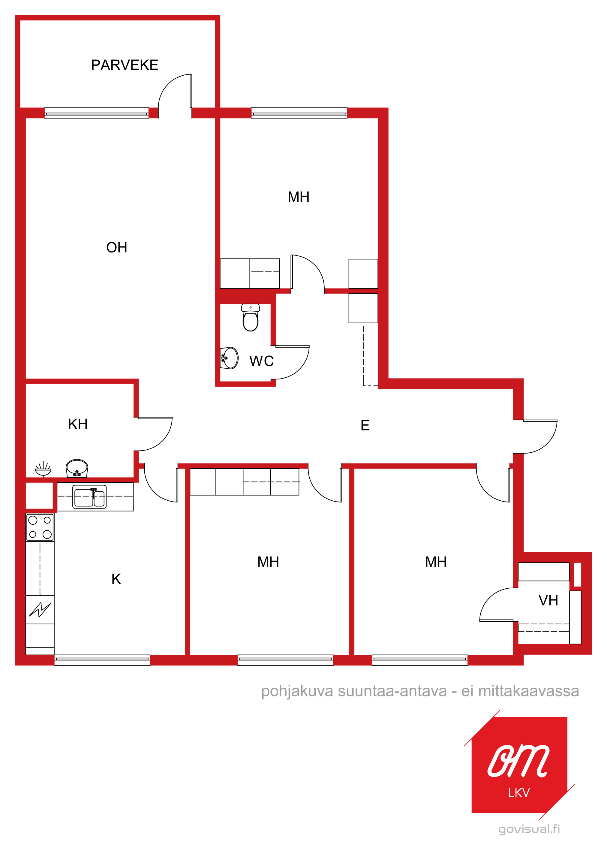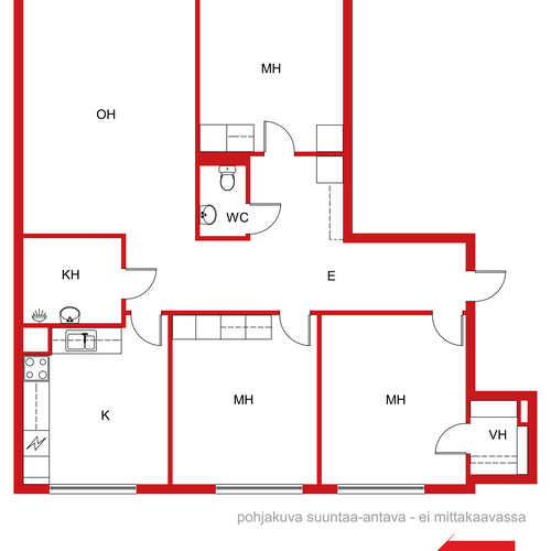 Pintaremontilla saat tästä mieleisesi kodin. Asuinmukavuutta lisäävät erilliset wc ja kylpyhuone.
