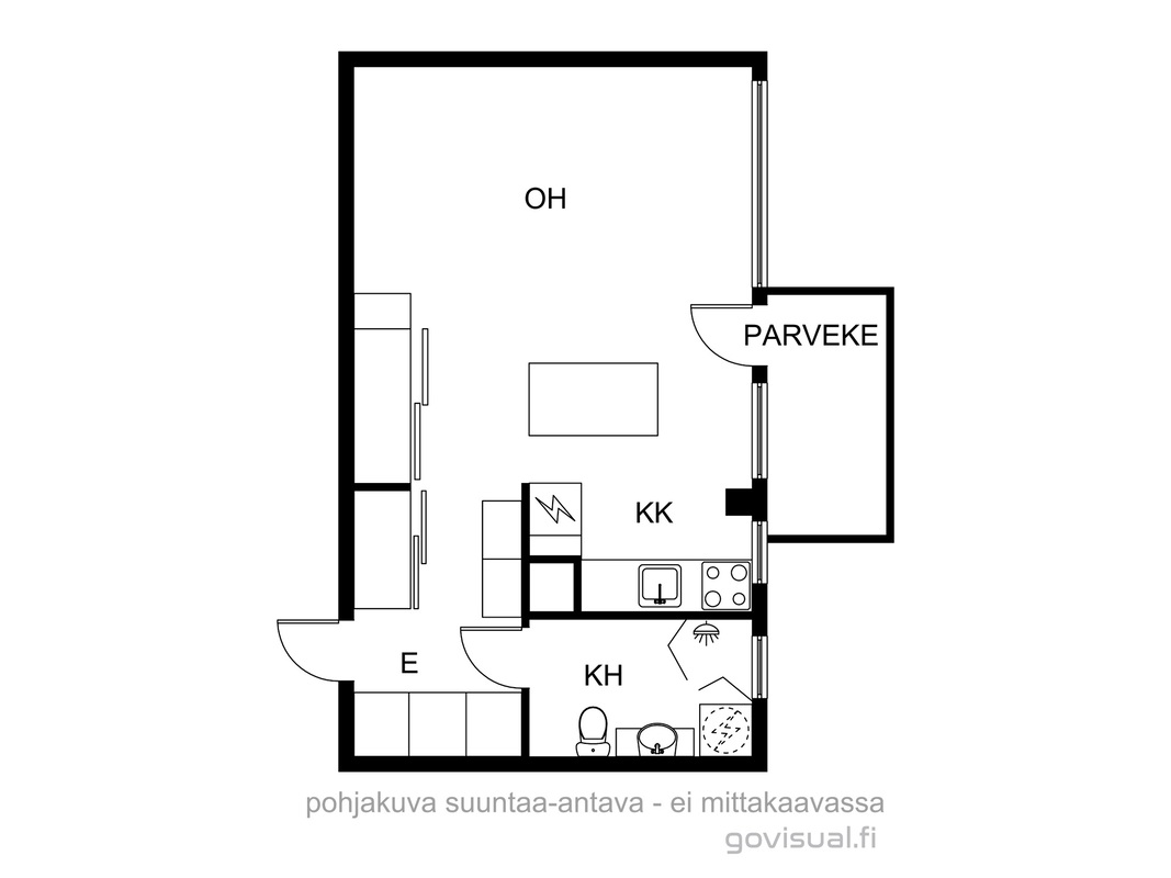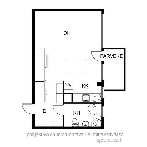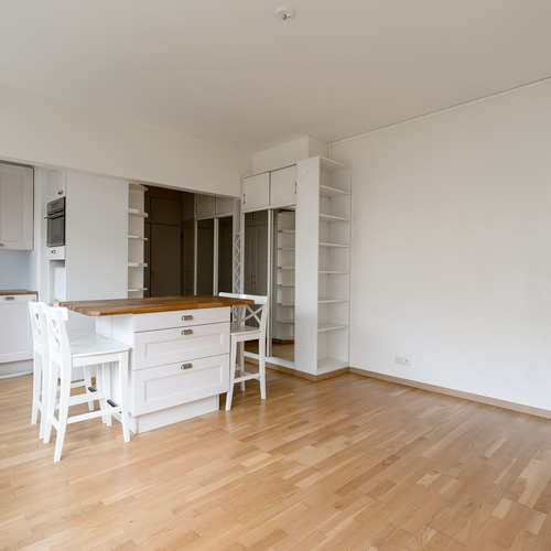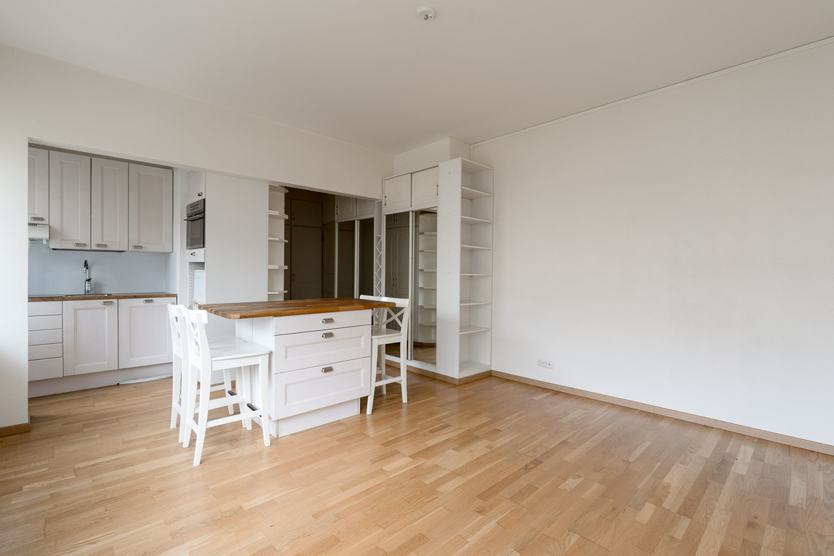 Viimeisen remontin yhteydessä tätä kohdetta on avarrettu purkamalla seiniä eteisen sekä keittokomeron ja huoneen välillä. Lisäksi tuolloin on kaappitilaa asennettu poikkeuksellisen reilusti. Harvinaiselle parvekkeelle sopii hyvin pöytä ja pari tuolia kesäisten iltapäivien viettoa varten.