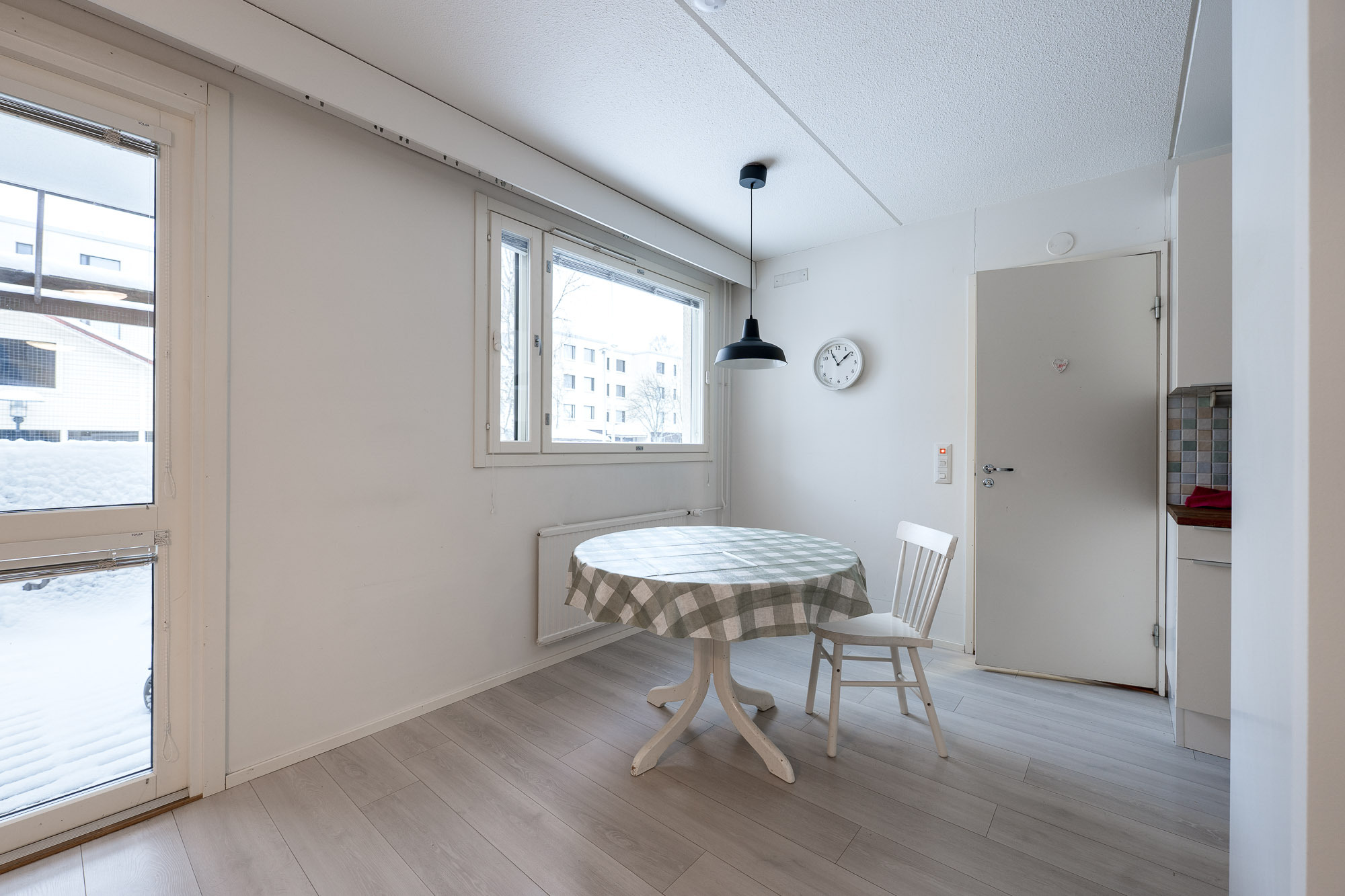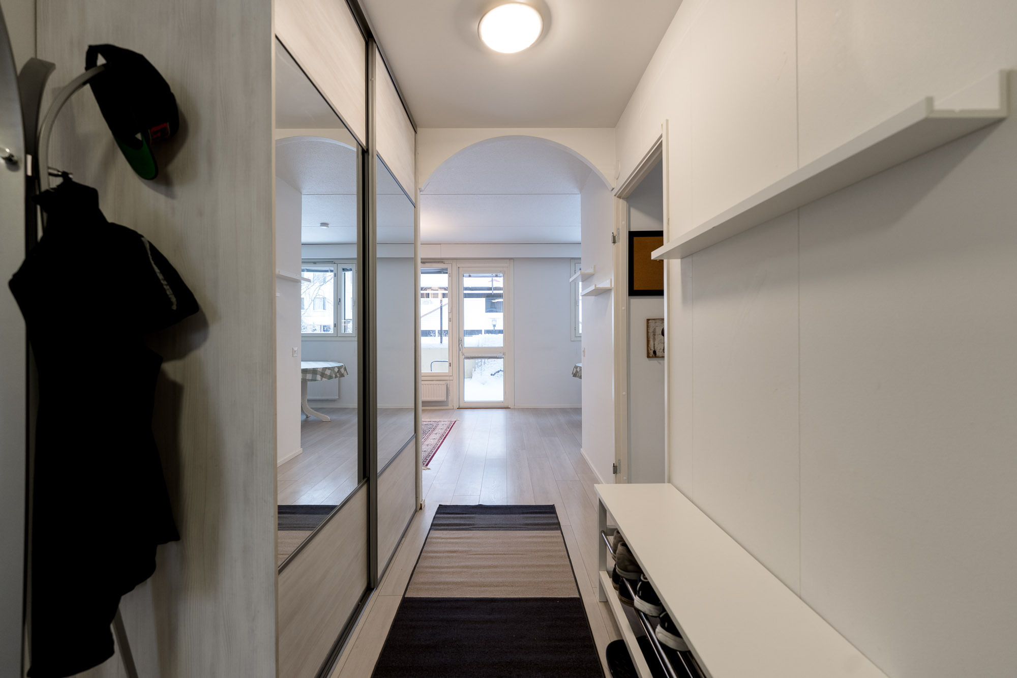 Tämä loistopohjainen pienkerrostalokoti on varustettu iltapäiväauringon suuntaan aukeavalla reilunkokoisella terassilla. Perheasunnoksi hyvin sopiva esteetön huoneisto kaipaa pinnoilleen ja tarvittaessa kiintokalusteilleen päivityksen. "Oma" juna-asema sijaitsee kivenheiton päässä ja ulkoilualueet alkavat heti päättyvän kadun perältä. Yhtiö on hyvin hoidettu ja sijaitsee omalla tontilla, alueella, joka on kuin oma, rauhallinen kylänsä.