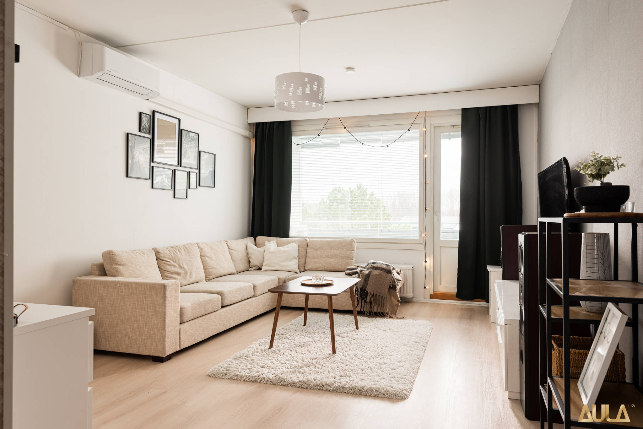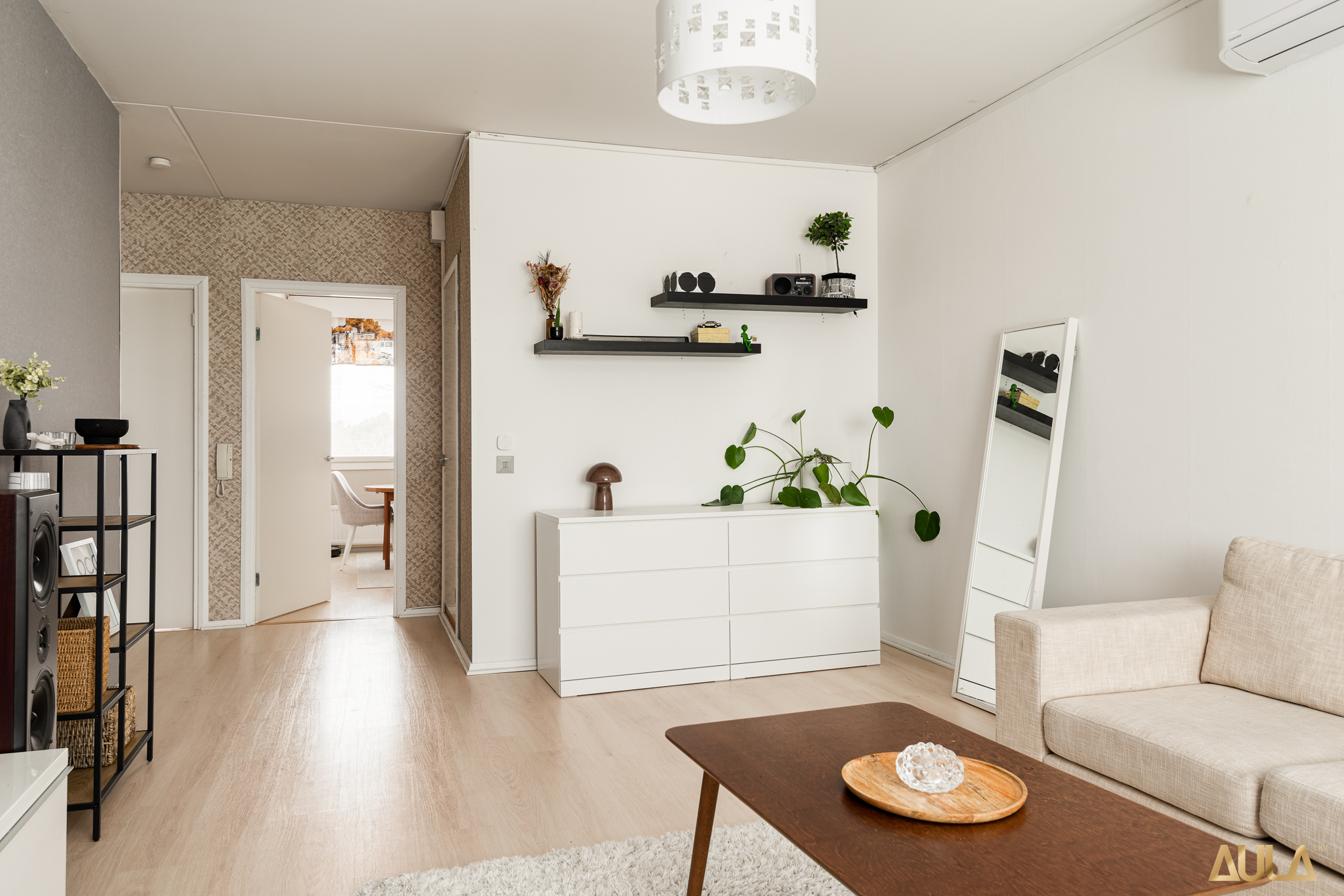 Tästä ihastuttavasta asunnosta löydät kaksi tilavaa makuuhuonetta ja hiljaisella ilmalämpöpumpulla varustetun olohuoneen. Kylpyhuone ja keittiö ovat molemmat kokeneet uudistuksen viimeisen parin vuoden aikana. Tilakaan ei lopu kesken, sillä asunnossa on myös tilava vaatehuone. Tähän asuntoon kelpaa muuttaa ilman remonttihuolia.