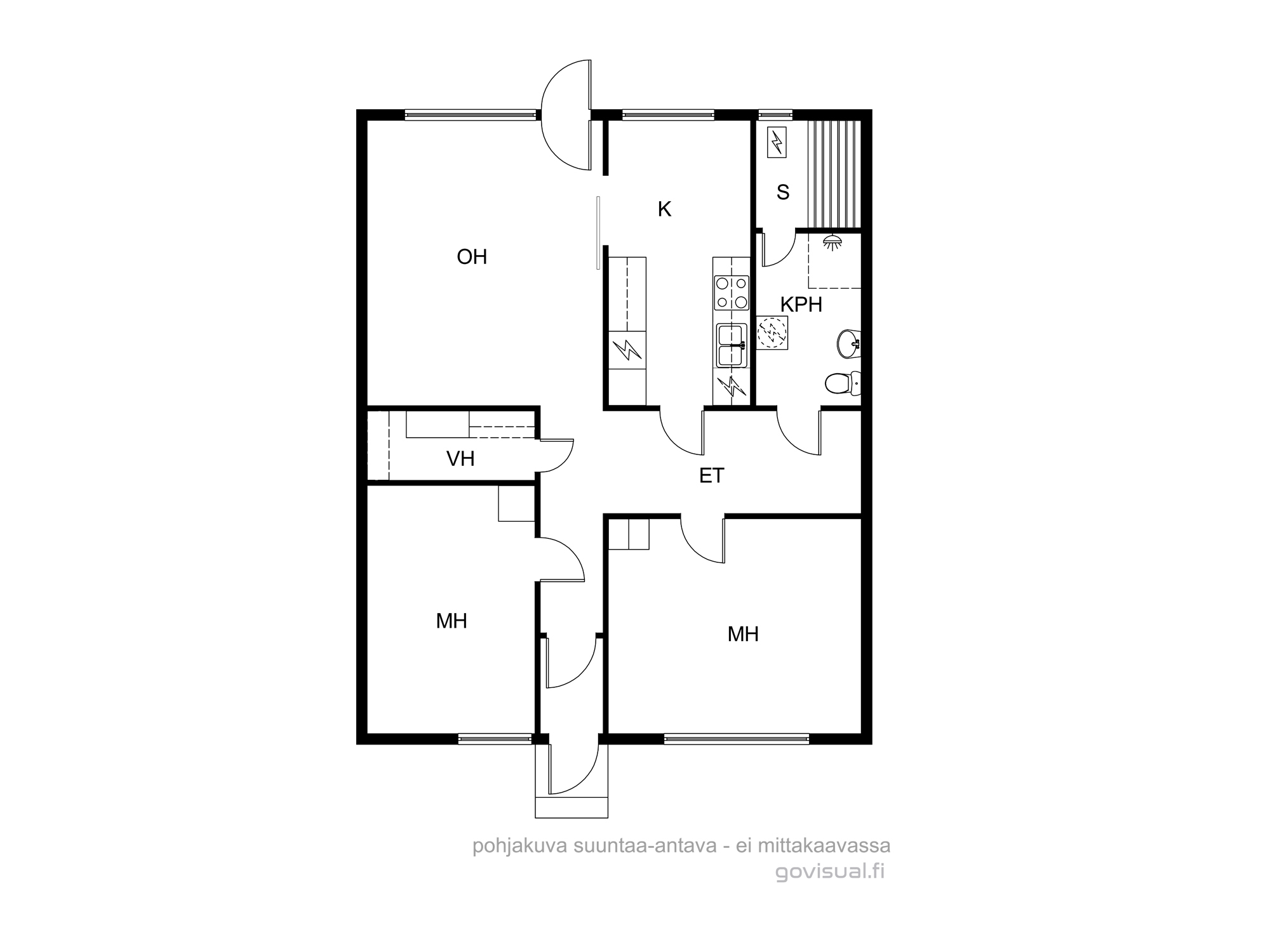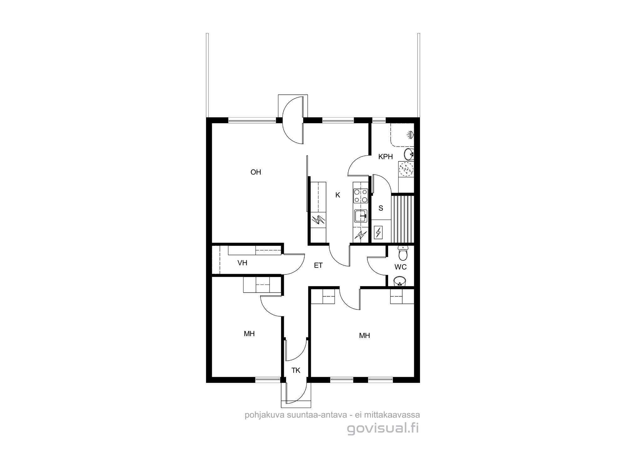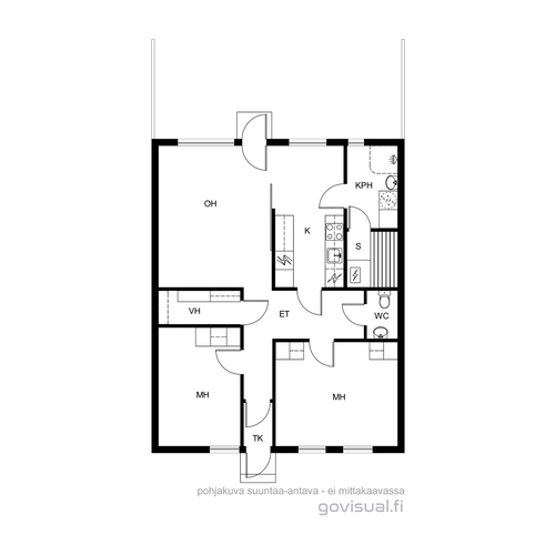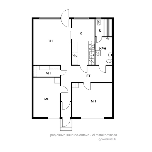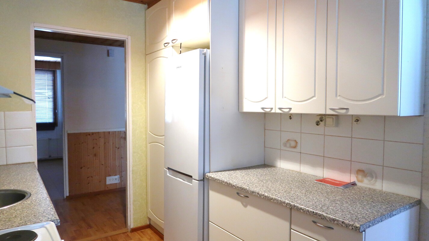 Varusteet: jääkaappipakastin, astianpesukone, sähköliesi, liesituuletin hormilla
