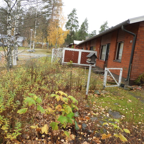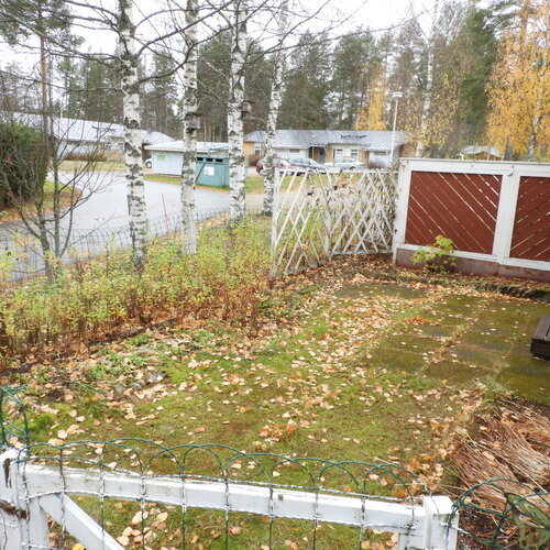 Asunnossa on tilava päätypiha, joka on kevyesti aidattu ja sijaitsee auringon puolella. Asuntoon kuuluu myös ulkovarasto sekä lämmitystolpallinen autopaikka.