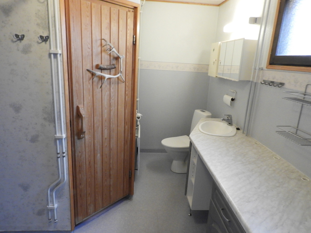 Varusteet: suihku, suihkukaappi, pesukoneliitäntä, kiinteät valaisimet, peilikaappi