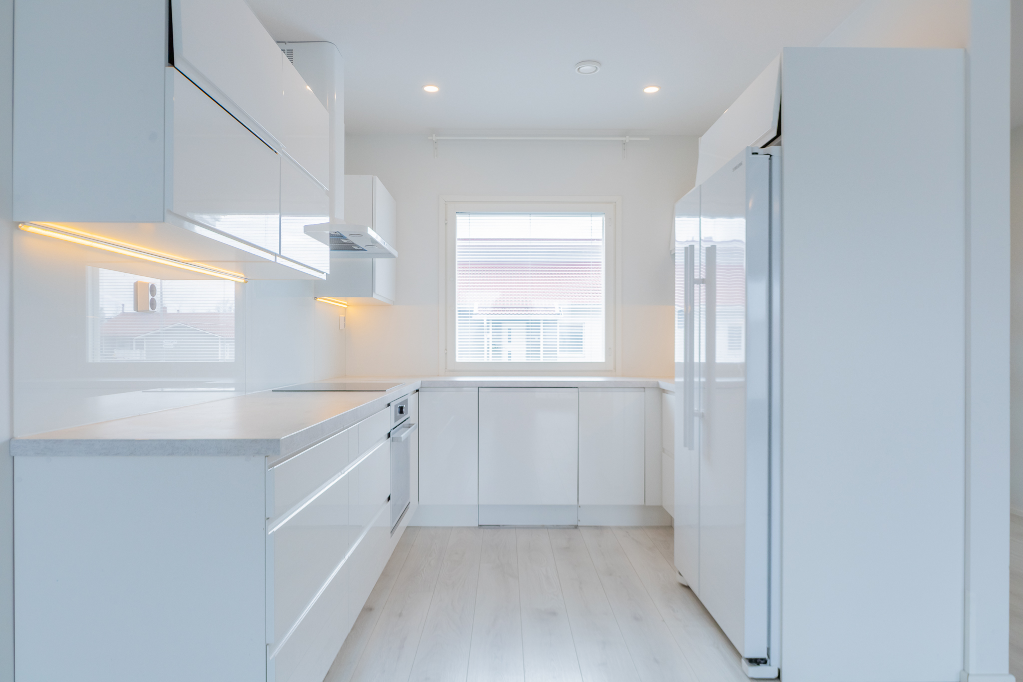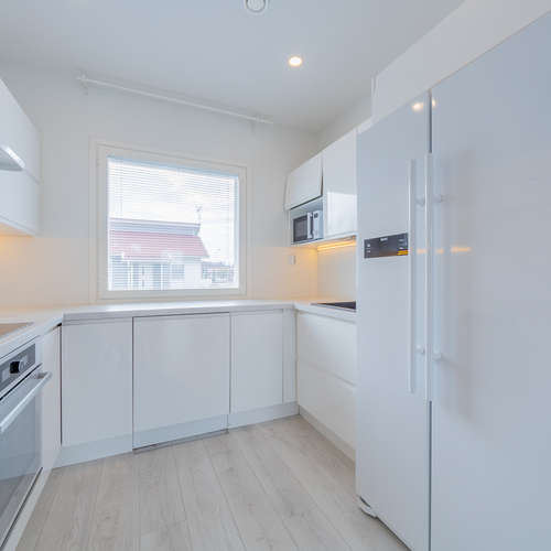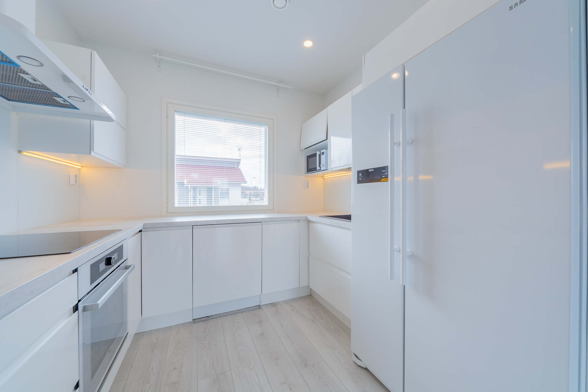Varusteet: jääkaappi, pakastin, astianpesukone, integroitu astianpesukone, integroidut kodinkoneet, keraaminen liesi, erillisuuni