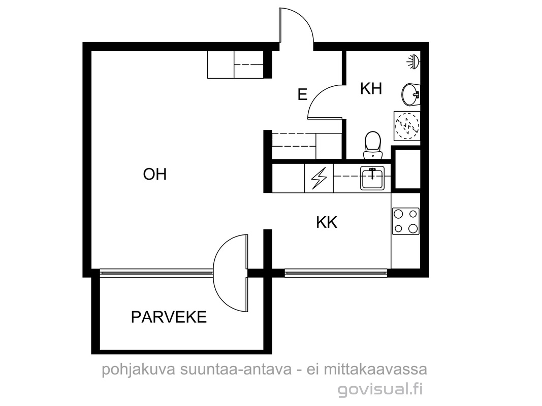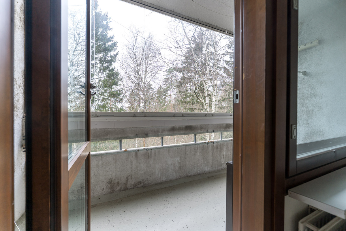 Toimiva pohjaratkaisu käsittää keittiön, olohuoneen sekä kylpyhuoneen. Asunnon kruunu on iso lasitettu länteen päin avautuva parveke, joka tuo runsaasti valoa sisätiloihin ja laajentaa asuinpinta-alaa. Neljännessä kerroksessa sijaitsevan asunnon olohuoneesta on suora käynti parvekkeelle.