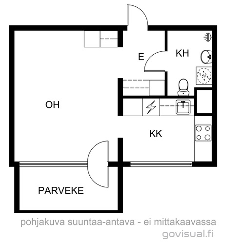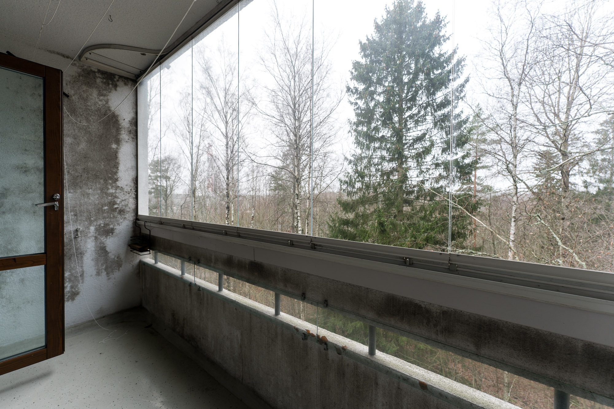 Toimiva pohjaratkaisu käsittää keittiön, olohuoneen sekä kylpyhuoneen. Asunnon kruunu on iso lasitettu länteen päin avautuva parveke, joka tuo runsaasti valoa sisätiloihin ja laajentaa asuinpinta-alaa. Neljännessä kerroksessa sijaitsevan asunnon olohuoneesta on suora käynti parvekkeelle.