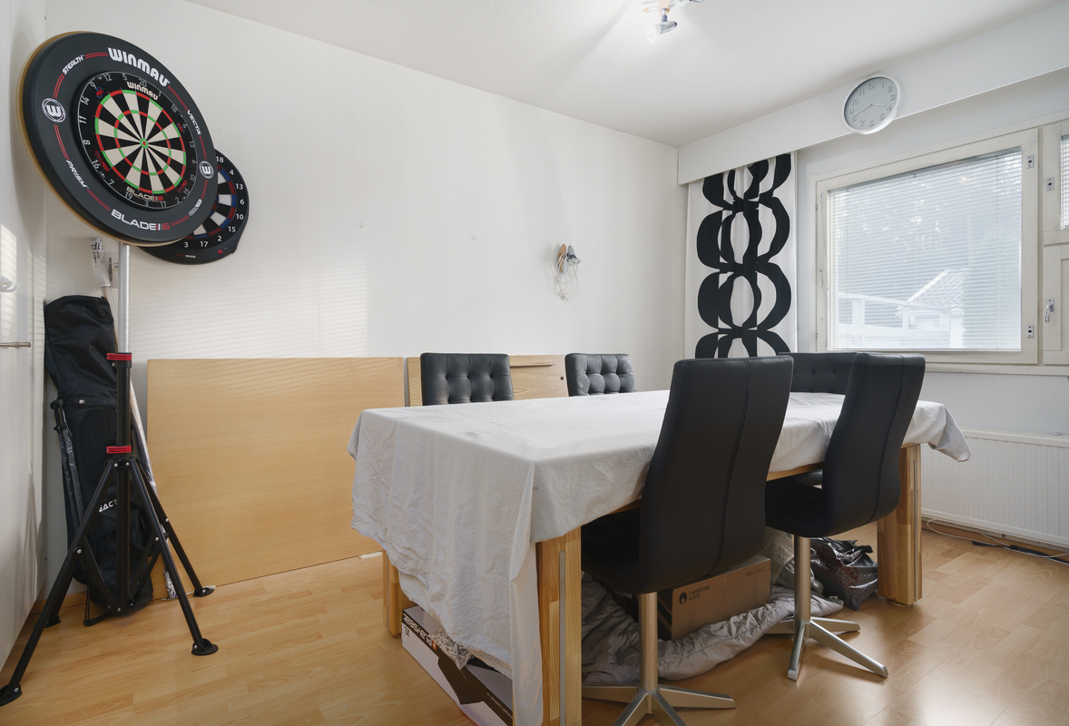 Pintamateriaalit: Laminaattilattia, seinät tapetoitu tai maalattu.