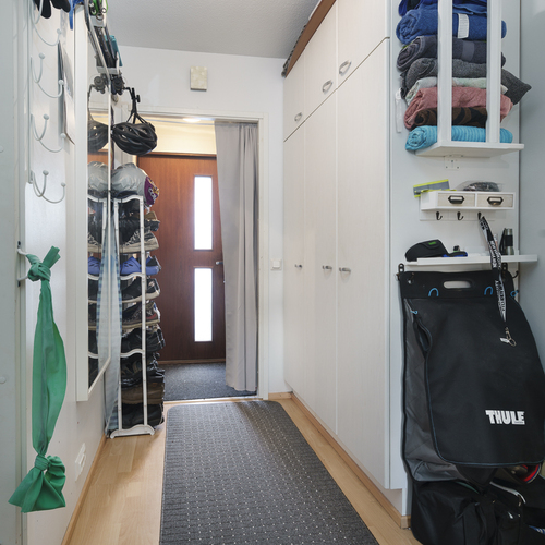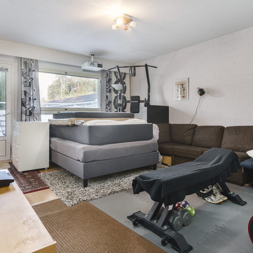 Asunto on läpitalon ja terassi on ilta-aurinkoon. Ikkunallinen sauna. Autoa voi pitää vapaasti yhtiön alueella ja omaa autoa asunnon edessä, jossa on myös sähköpistoke. Yhtiössä on 24 autotallia osakkeina.