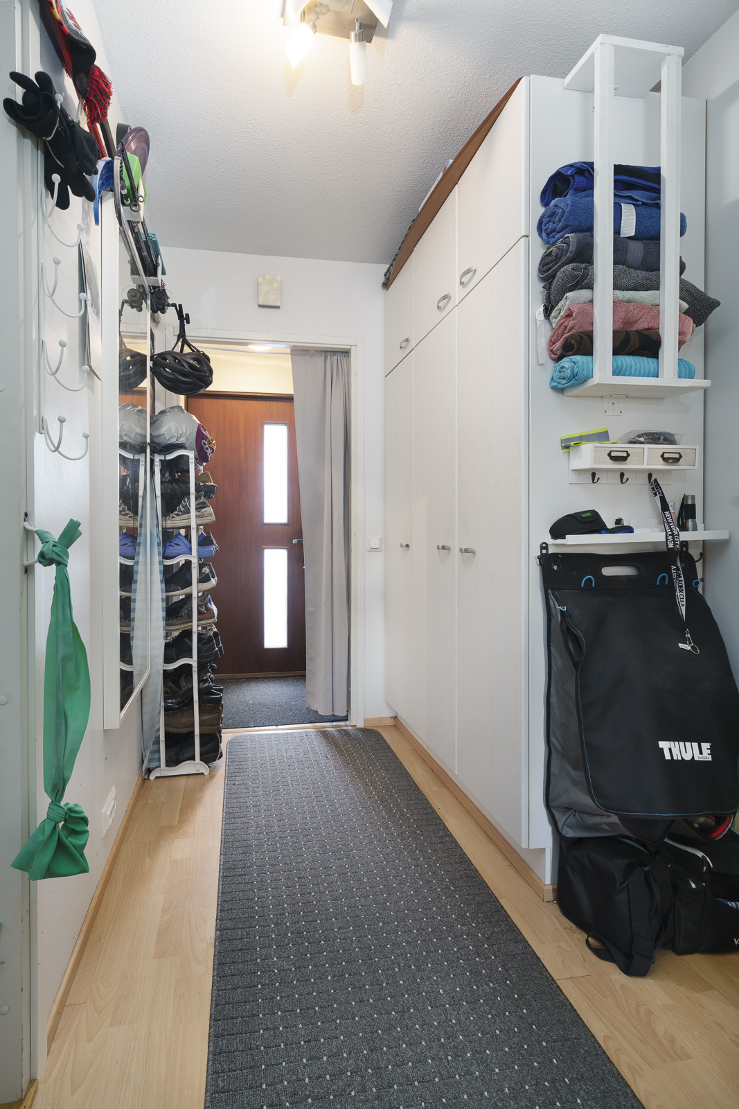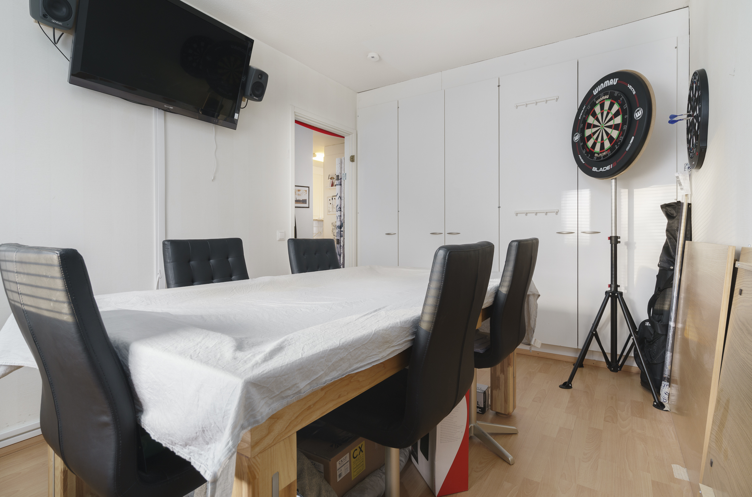 Pintamateriaalit: Laminaattilattia, seinät tapetoitu tai maalattu.
