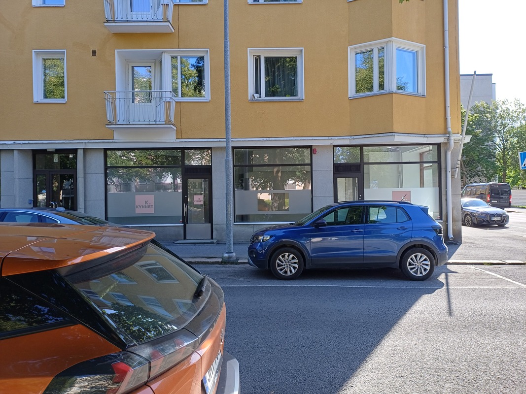 Liikehuoneisto sijoittuu Länsipuiston ja Katariinankadun kulmaan, tilaan on kaksi sisäänkäyntiä Länsipuiston puolelta.